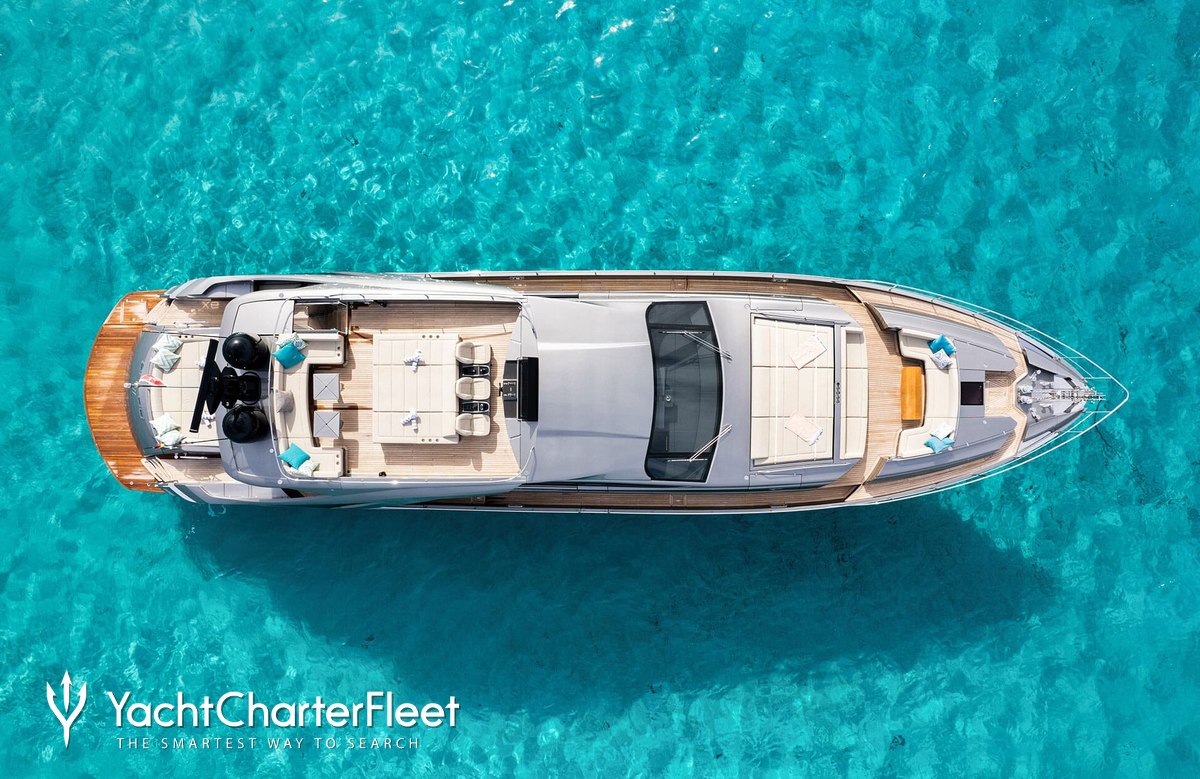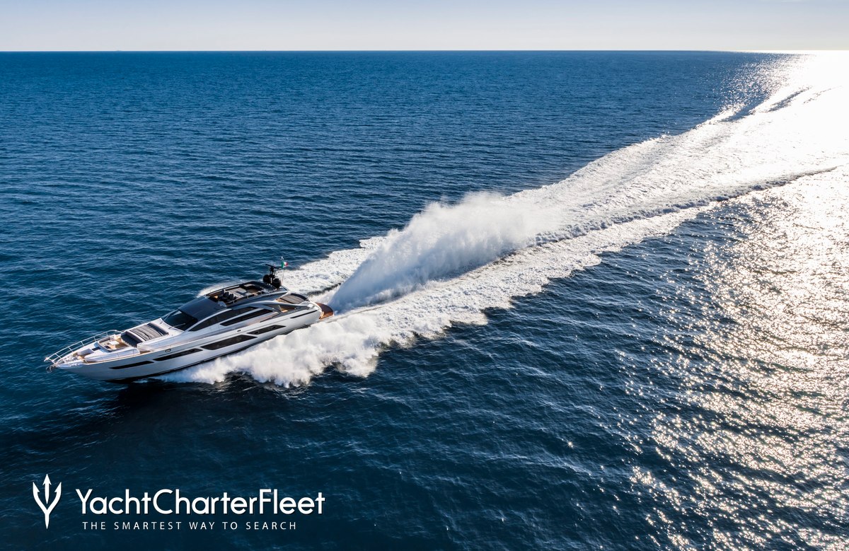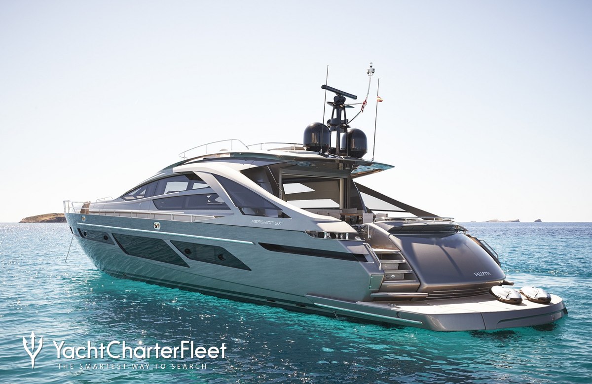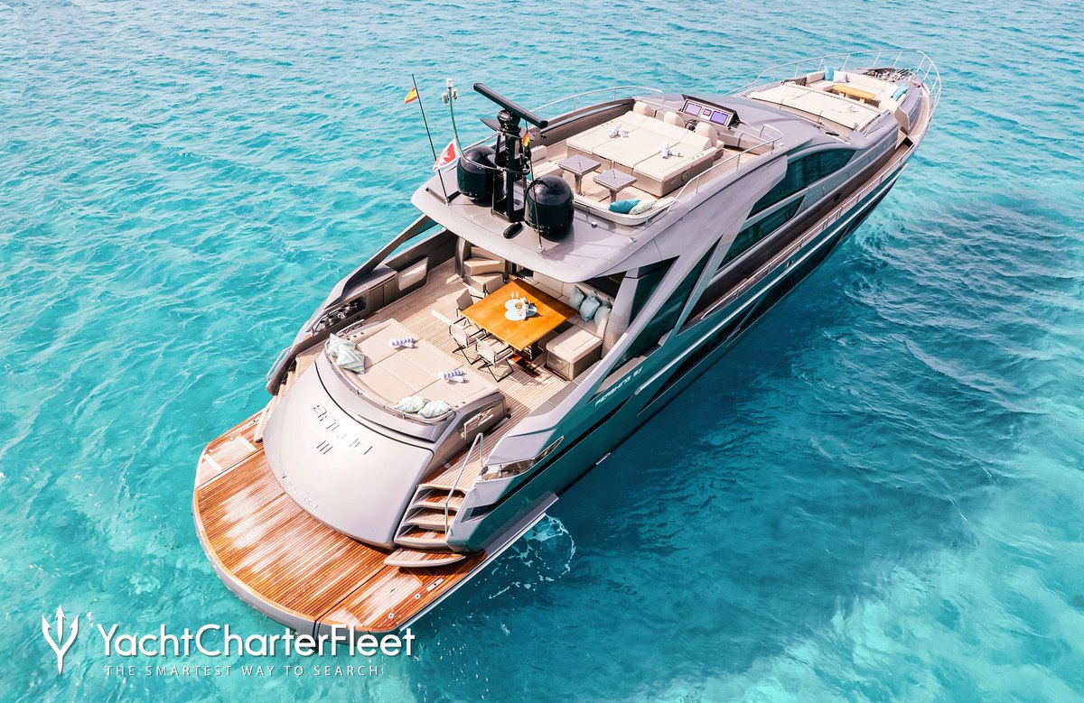 The 28.14m/92'4" 'Baloo III' open yacht built by the Italian shipyard Pershing is available for charter for up to 9 guests in 4 cabins.