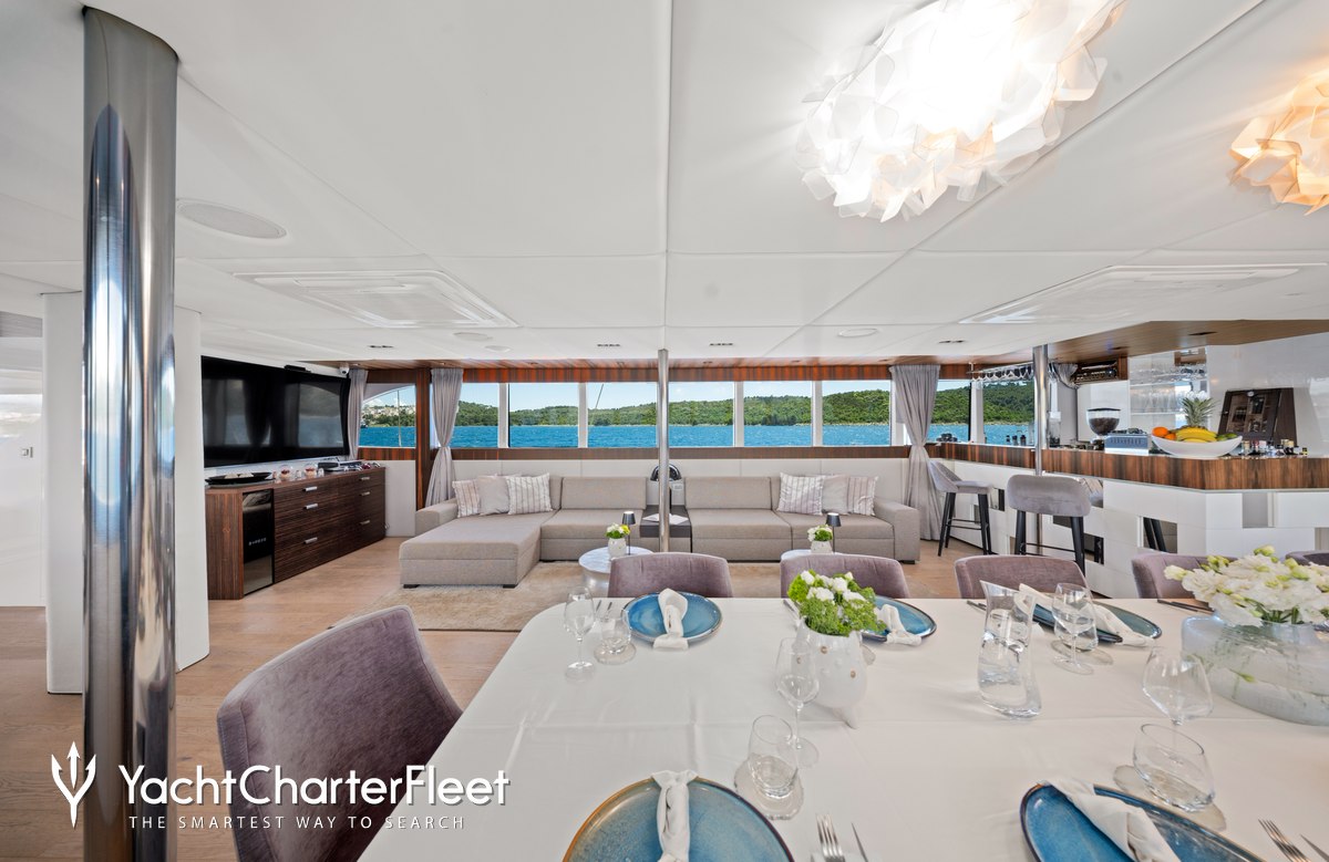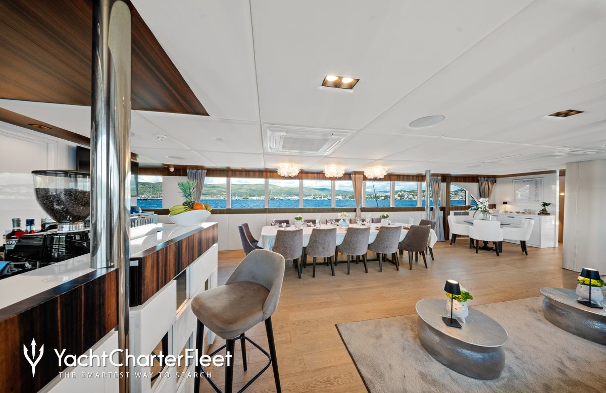 Offering an enticing combination of luxury and adventure, Dalmatino has all the bells and whistles and a wealth of convivial social spaces for the ultimate sun-kissed yacht charter getaway.