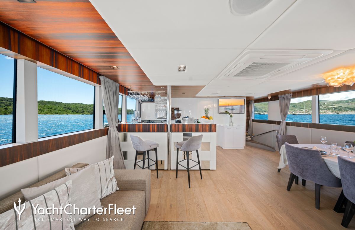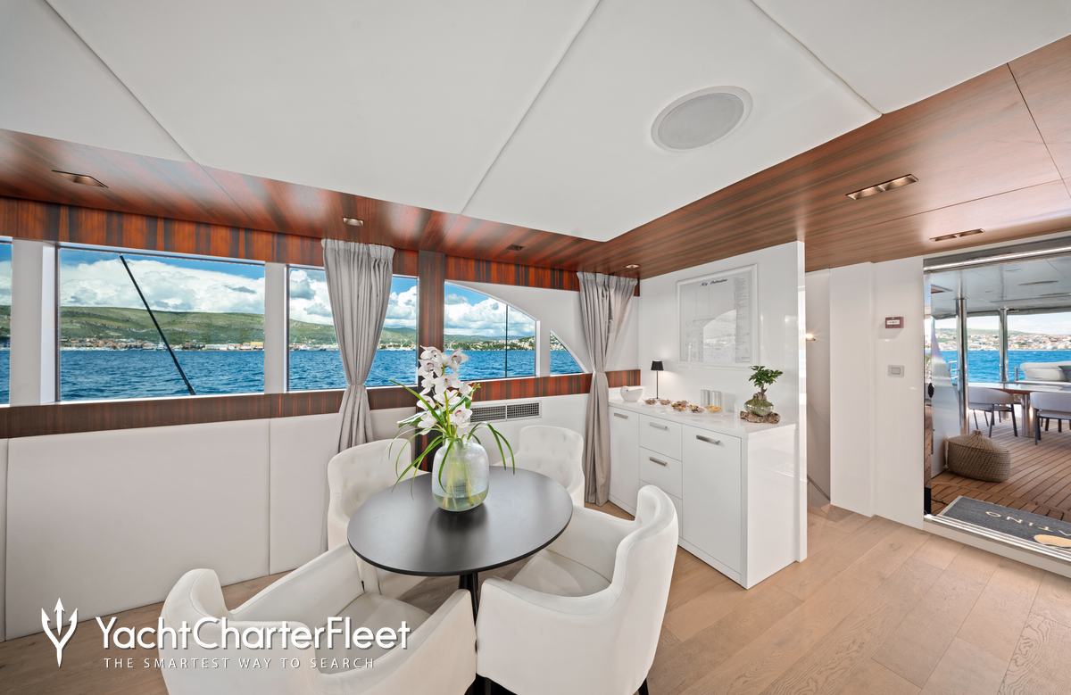 Dalmatino benefits from some excellent features to improve your charter including Wi-Fi connectivity, allowing you to stay connected at all times, should you wish. Guests will experience complete comfort while chartering thanks to air conditioning.