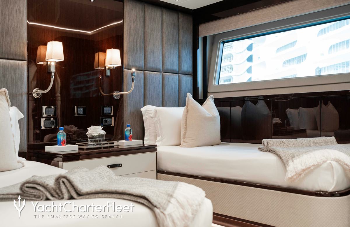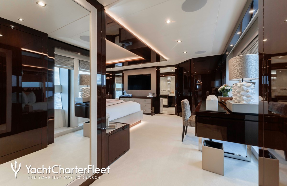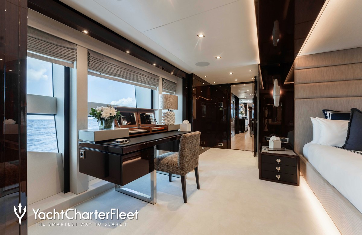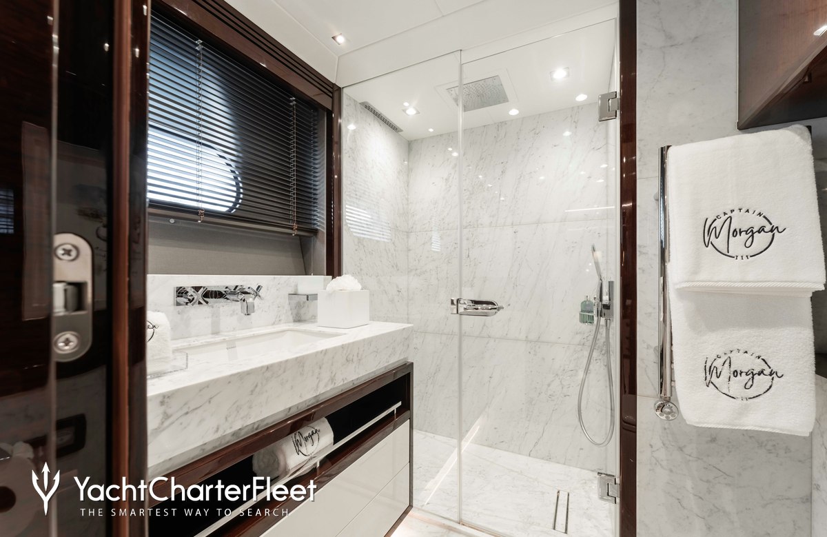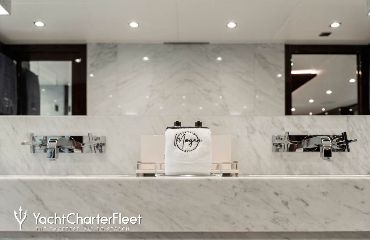Captain Morgan III offers guest accommodation for up to 10 guests in 5 suites comprising a master suite, two VIP cabins and two twin cabins. The supremely spacious full beam master suite features extensive storage space provided by the dressing room. The bed configuration includes 2 convertible. She is also capable of carrying up to 8 crew onboard to ensure a relaxed luxury yacht charter experience.