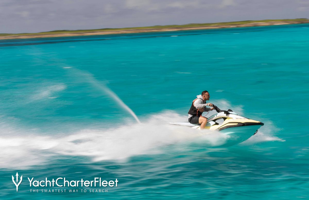 Onboard Captain Morgan III has a large selection of toys and accessories to keep you and your guests entertained on the water throughout your stay. Take to the sea on the Jet Skis offering you power and control on the water. Additionally, there are towable toys offering fun and adventure. Also there are two F5 SEABOBs, that allow you to skim along the surface or steer under the crystal water and experience life swimming with the fish. If that isn't enough Captain Morgan III also features wakeboards, kayaks, fishing equipment, inflatable water toys, kneeboards. Captain Morgan III features two tenders, but leading the pack is a 10.36m/34' Intrepid Chase Tender to transport you in style.