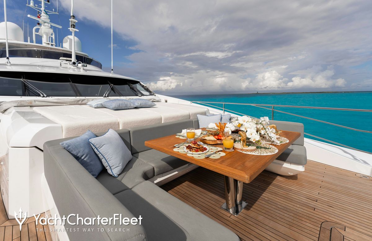 Built in 2020, Captain Morgan III offers beautifully proportioned decks for exquisite indoor/outdoor living during a luxury yacht charter.