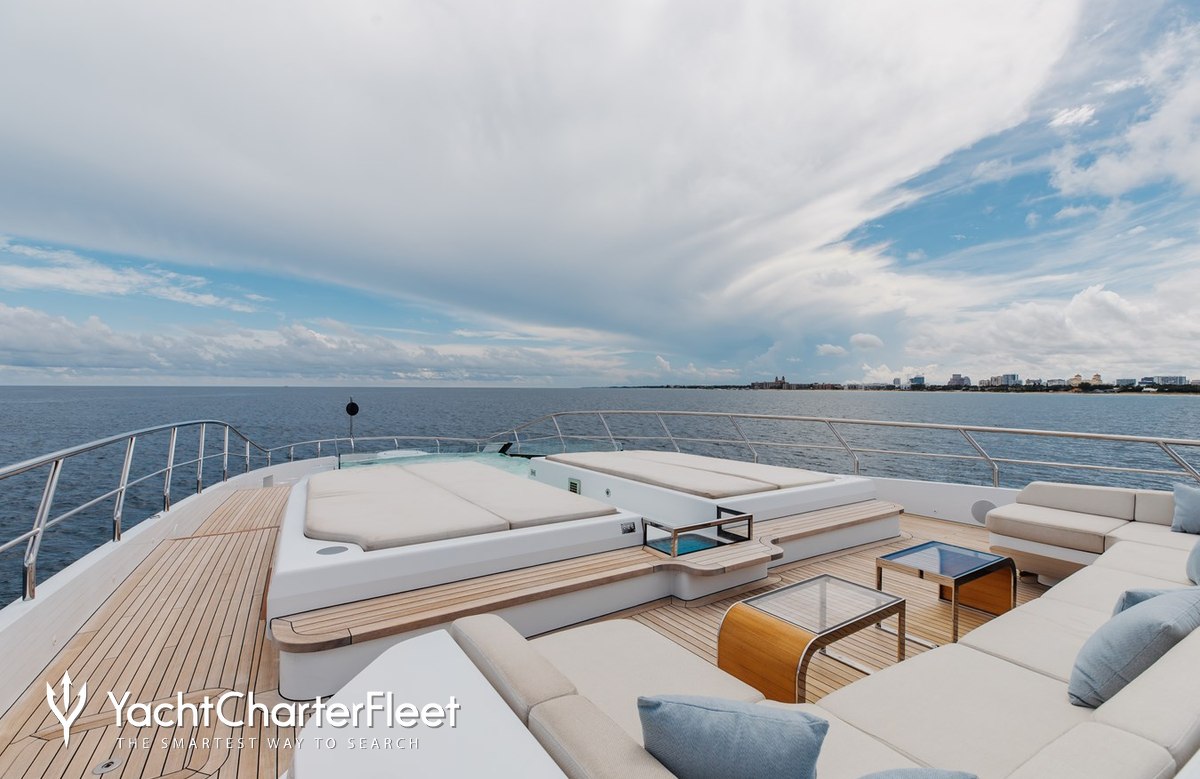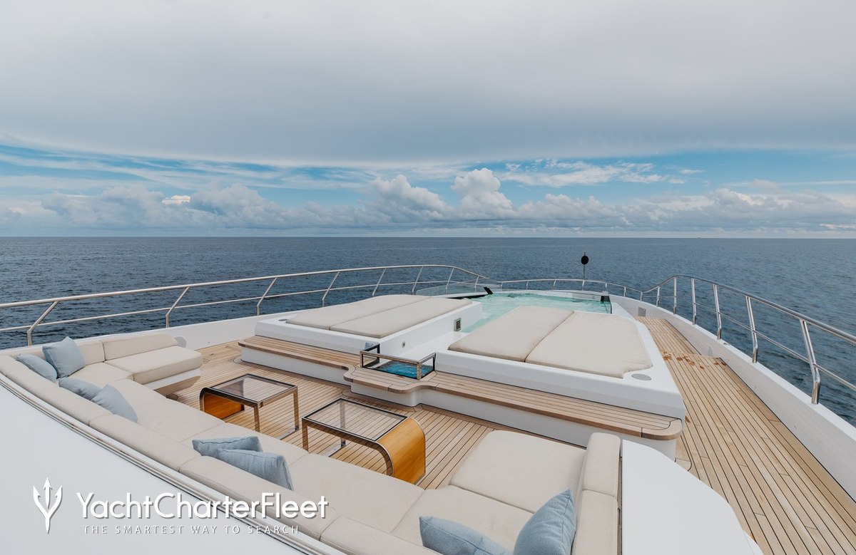 On your charter, you'll find plenty to keep you busy and entertained, notably a beach club for you to relax on the edge of the water. Soak up the bubbles in style in the deck jacuzzi.