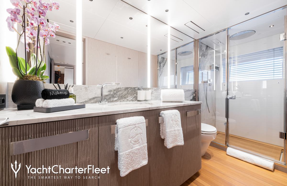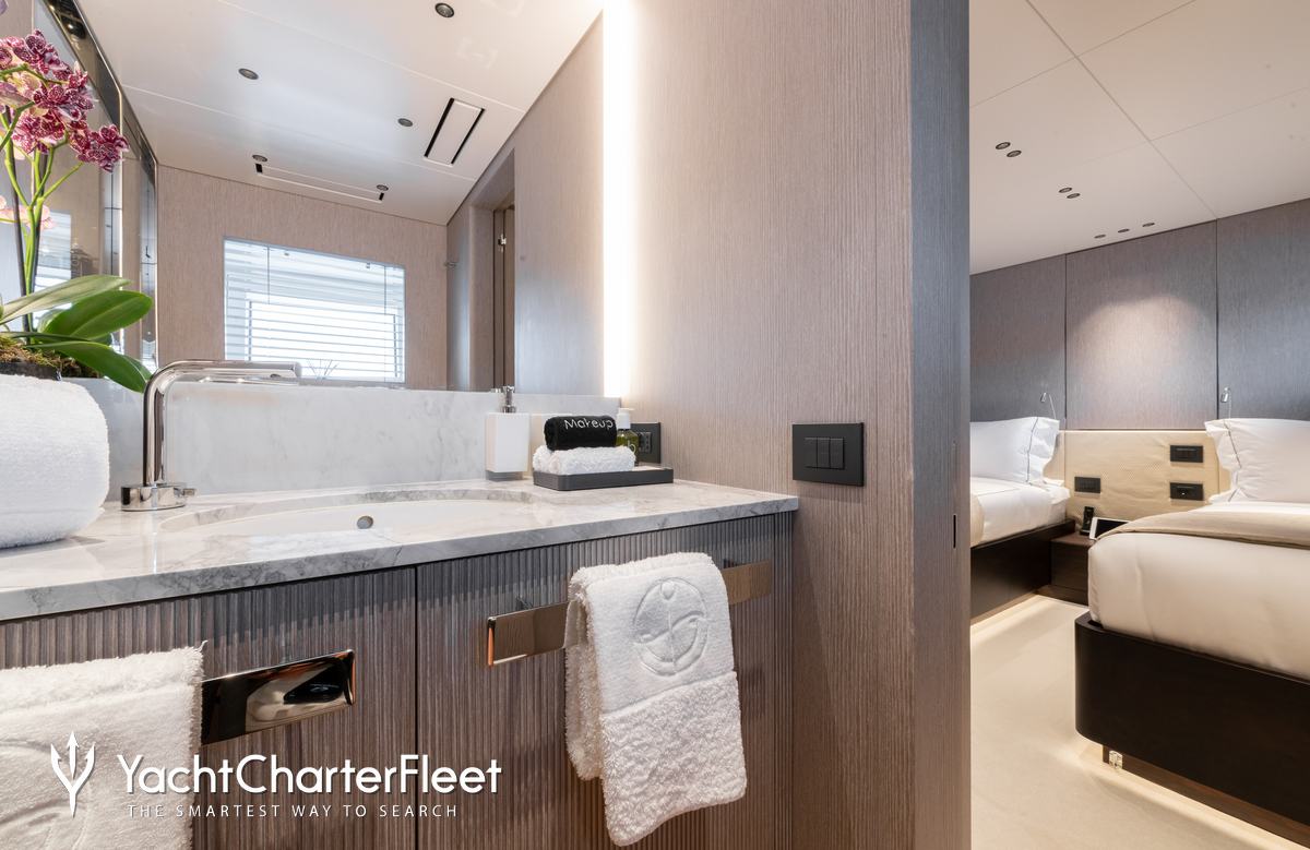 Built in 2022, Northern Escape offers guest accommodation for up to 12 guests in 6 suites comprising a master suite, two VIP cabins and two cabins that can operate as twins or doubles. The bed configuration includes 1 convertible. She is also capable of carrying up to 8 crew onboard to ensure a relaxed luxury yacht charter experience.