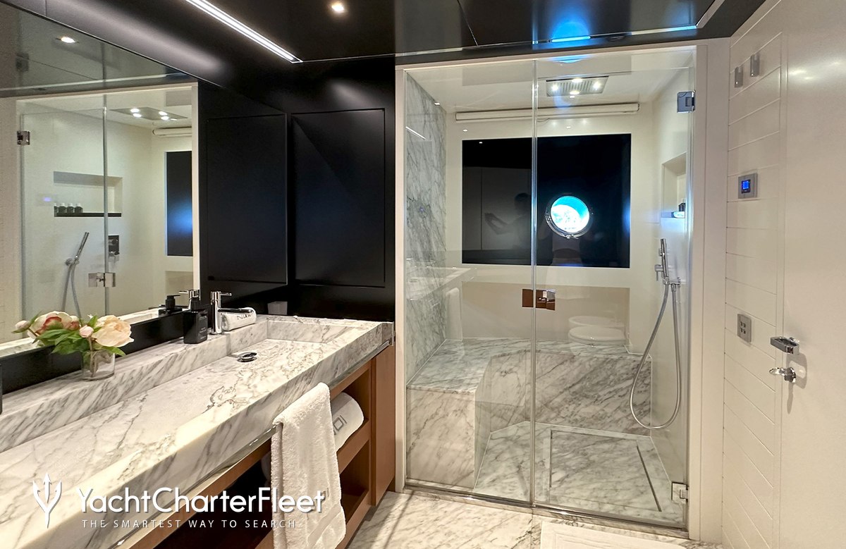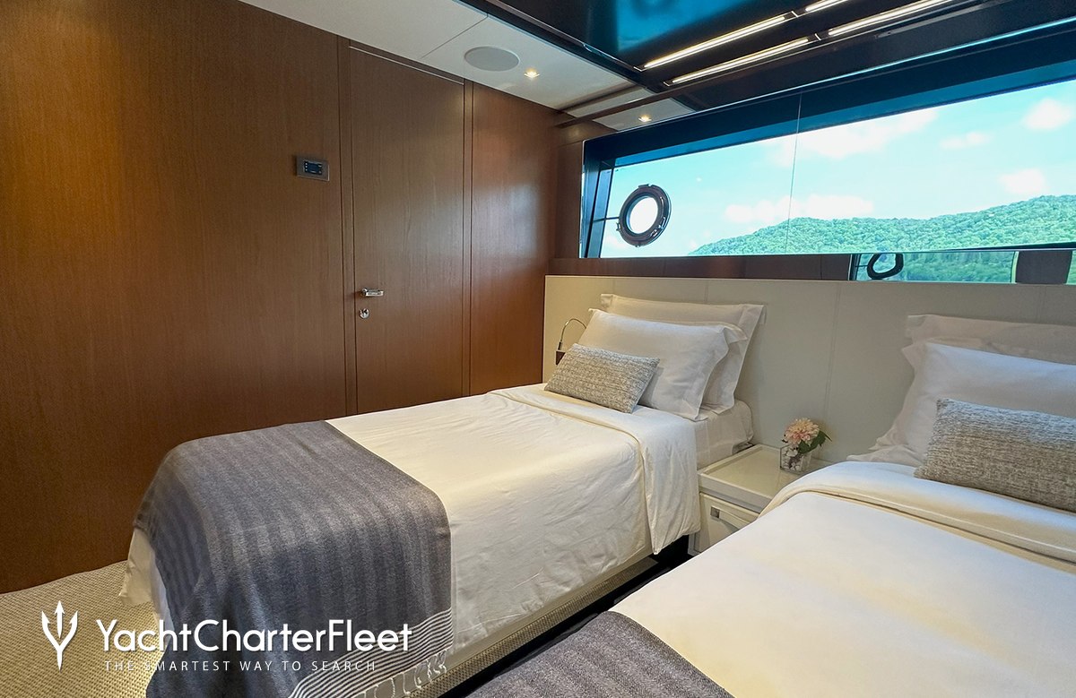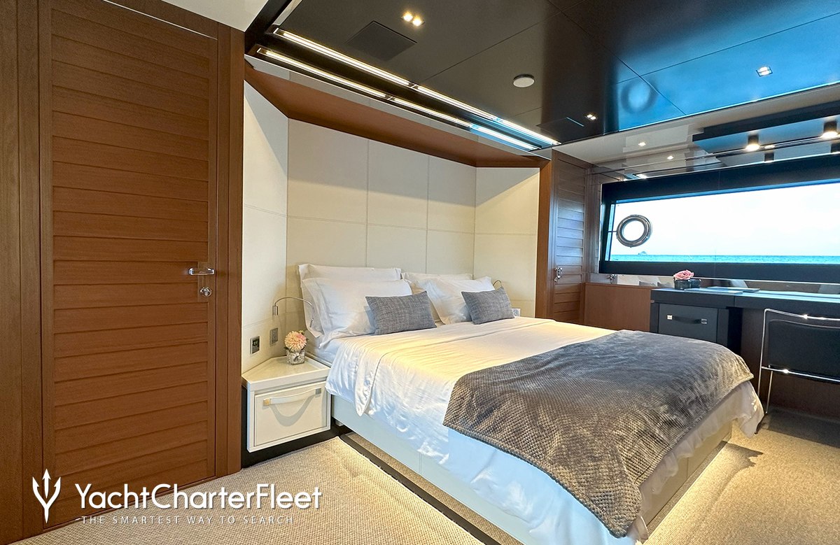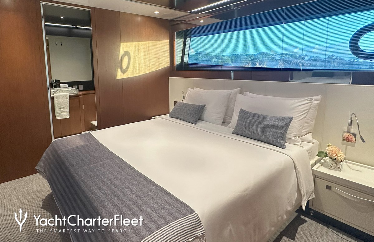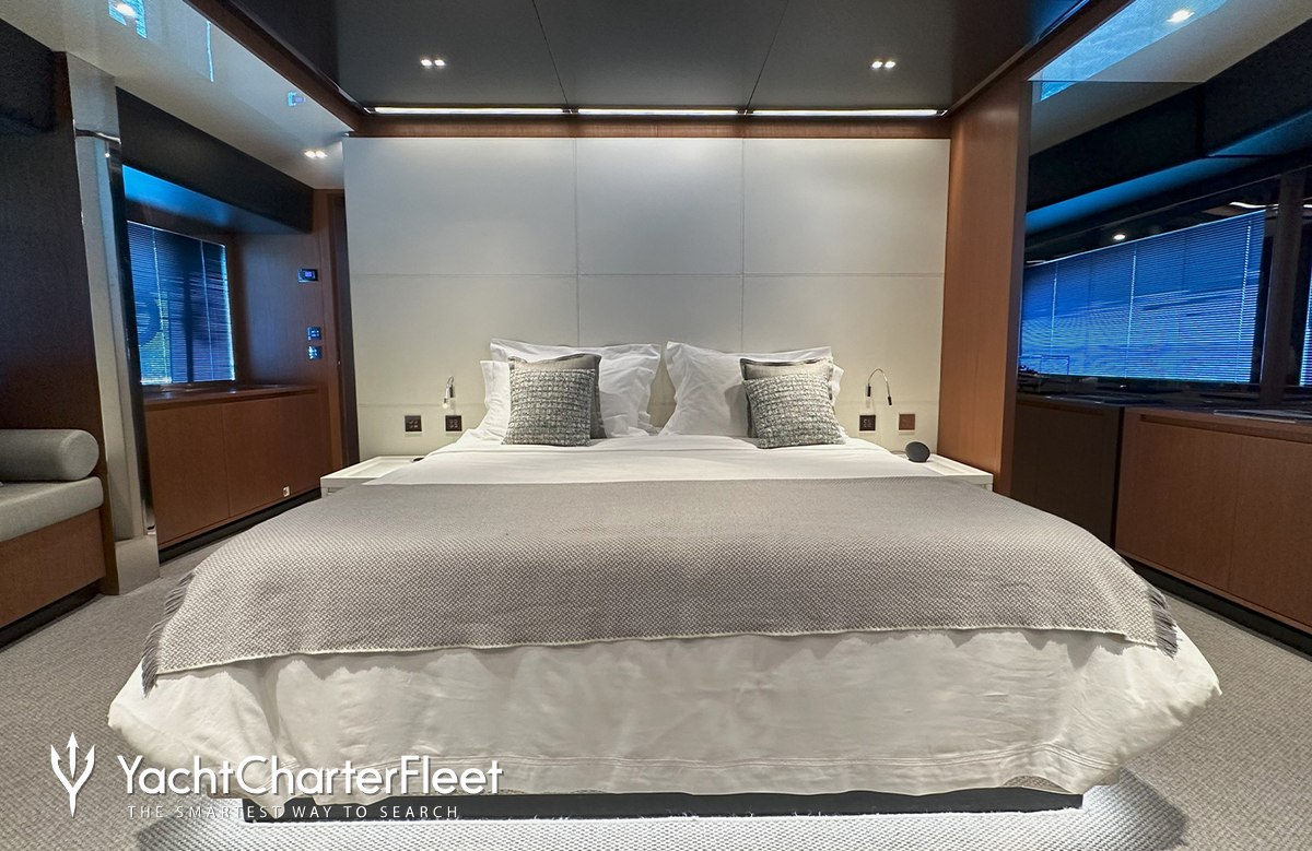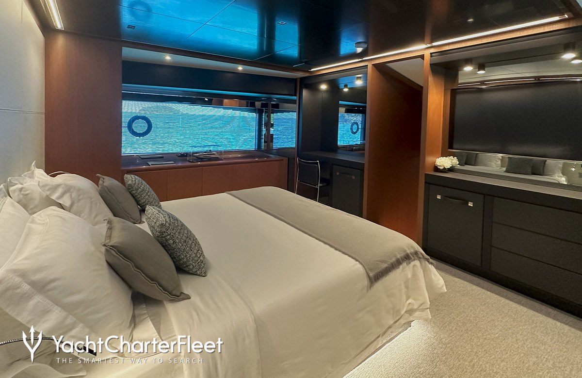 NOI offers guest accommodation for up to 8 guests in 4 suites comprising a master suite located on the main deck, one VIP cabin, one double cabin and one cabin that can operate as twin or double. She is also capable of carrying up to 4 crew onboard to ensure a relaxed luxury yacht charter experience.