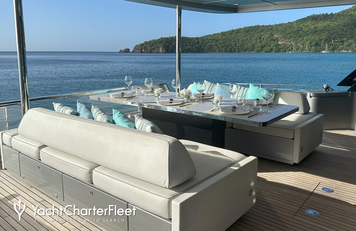 Whatever your activities on your charter, you'll find some impressive features are seamlessly integrated to help you, particularly Wi-Fi connectivity, allowing you to stay connected at all times, should you wish. You can stay comfortable on board whatever the weather, with air conditioning during your charter.