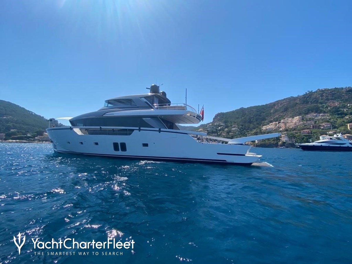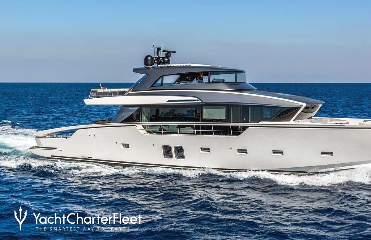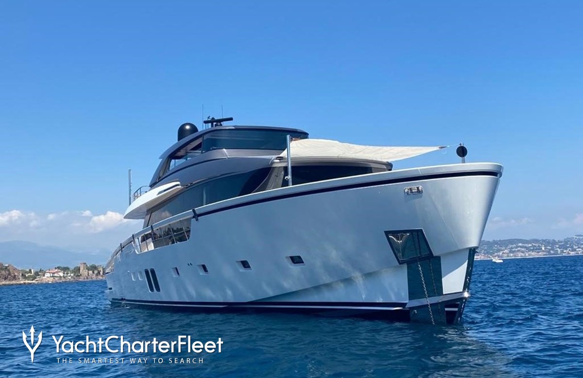 The 26.82m/88' 'Dragonfly I' motor yacht built by the Italian shipyard Sanlorenzo is available for charter for up to 8 guests in 4 cabins.