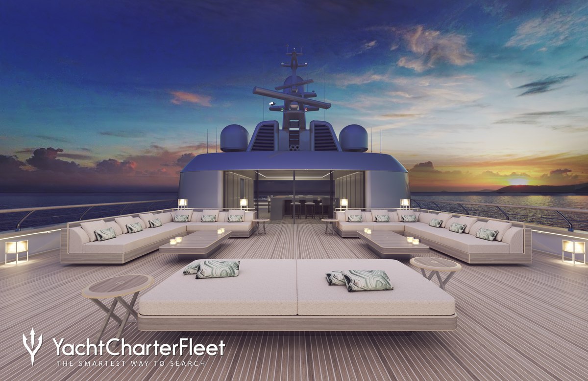 No Rush has been designed to comfortably accommodate up to 14 guests in 7 suites comprising one VIP cabin and four cabins that can operate as twins or doubles. The master suite incorporates its own study and dressing room as well as a his and her bathroom. She is also capable of carrying up to 20 crew onboard to ensure a relaxed luxury yacht experience.