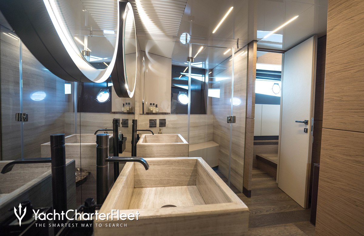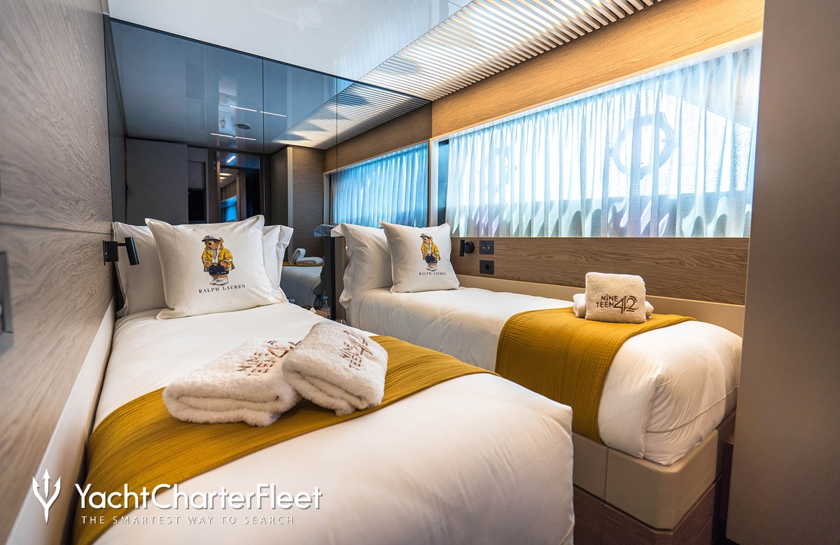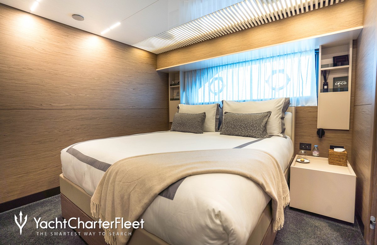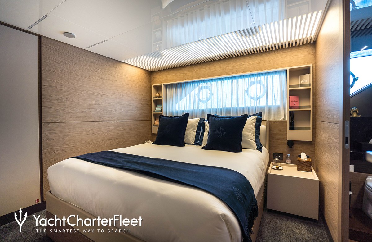 Nineteen 42 offers guest accommodation for up to 11 guests in 5 suites comprising a master suite, one VIP cabin, one double cabin and one twin cabin. There are 5 beds in total, including 3 queen and 2 singles. She is also capable of carrying up to 5 crew onboard to ensure a relaxed luxury yacht charter experience.