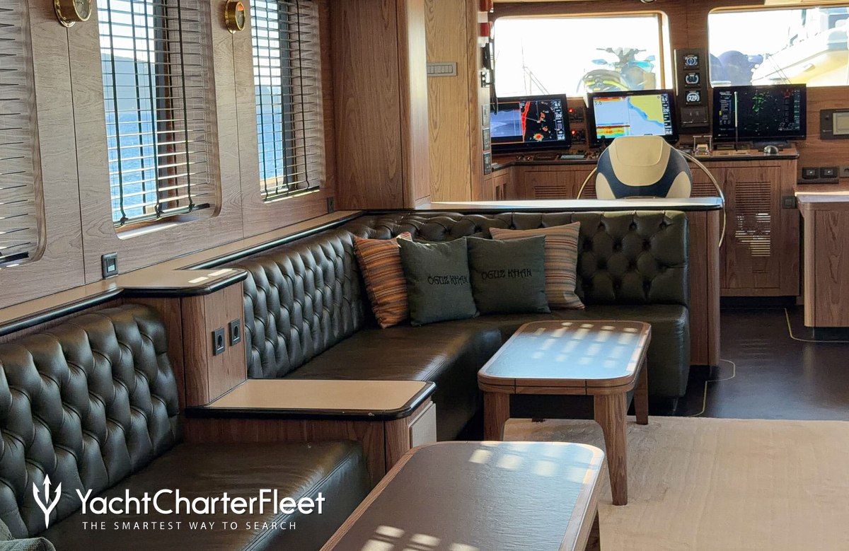 Oguz Khan benefits from some excellent features to improve your charter including Wi-Fi connectivity, allowing you to stay connected at all times, should you wish. You can stay comfortable on board whatever the weather, with air conditioning during your charter.