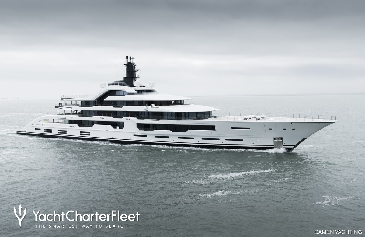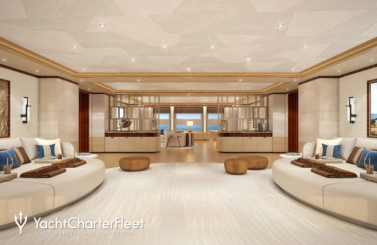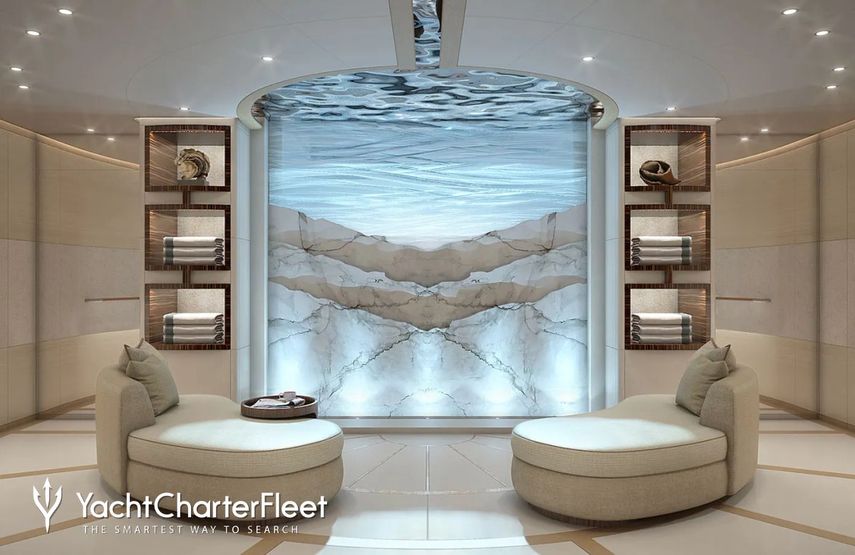 Her features include beauty salon, underwater lights, beach club, gym, deck jacuzzi, WiFi and air conditioning.