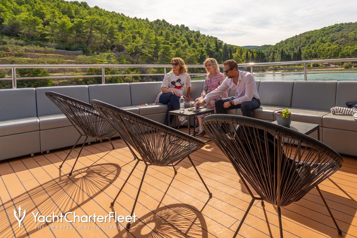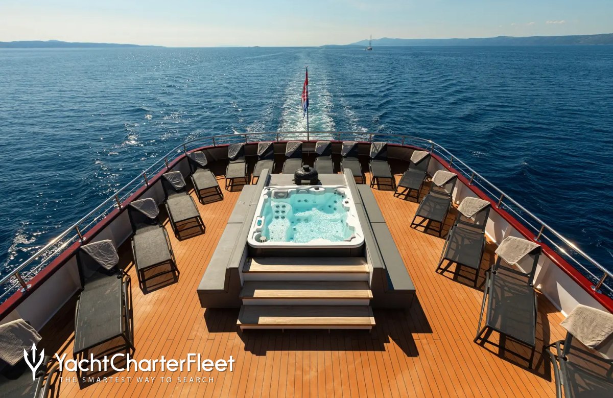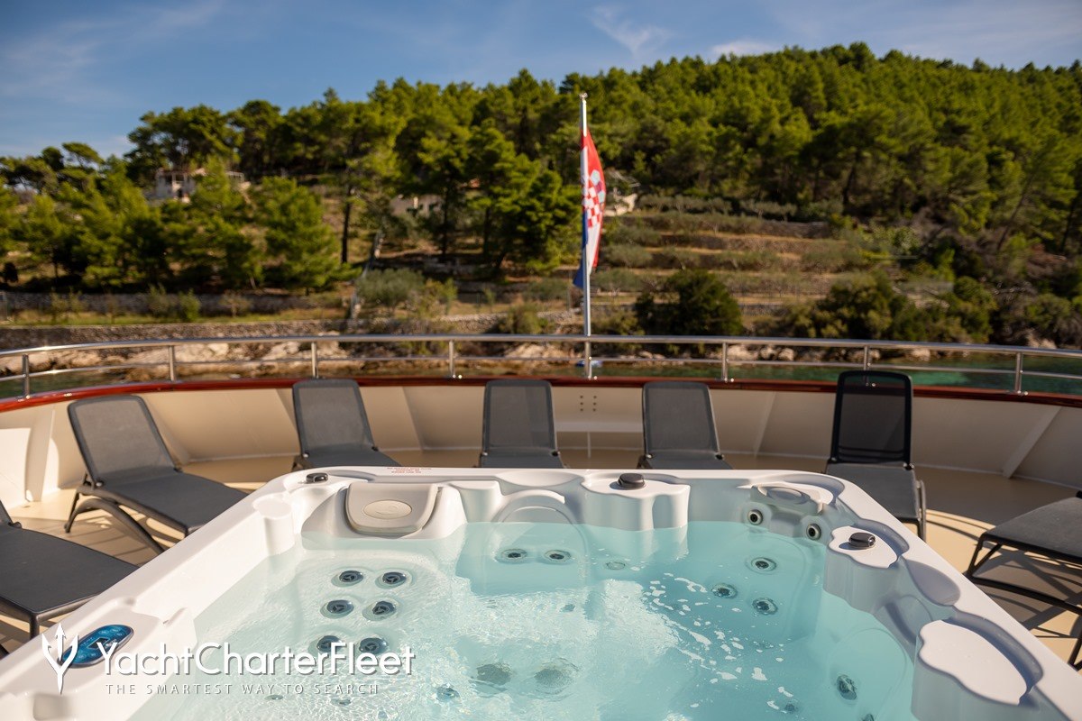 Keeping comfortable and entertained on Yolo is easy thanks to the available amenities including a deck jacuzzi, perfect to enjoy the scenery with your favourite drink in hand.