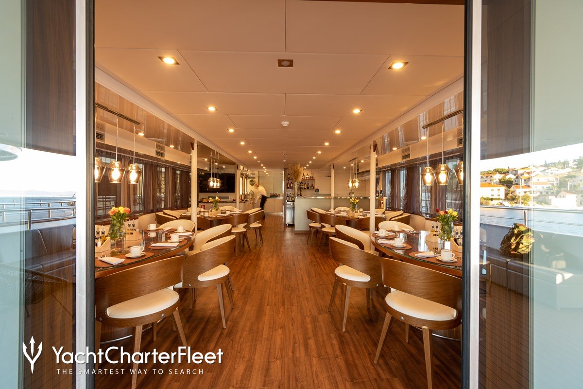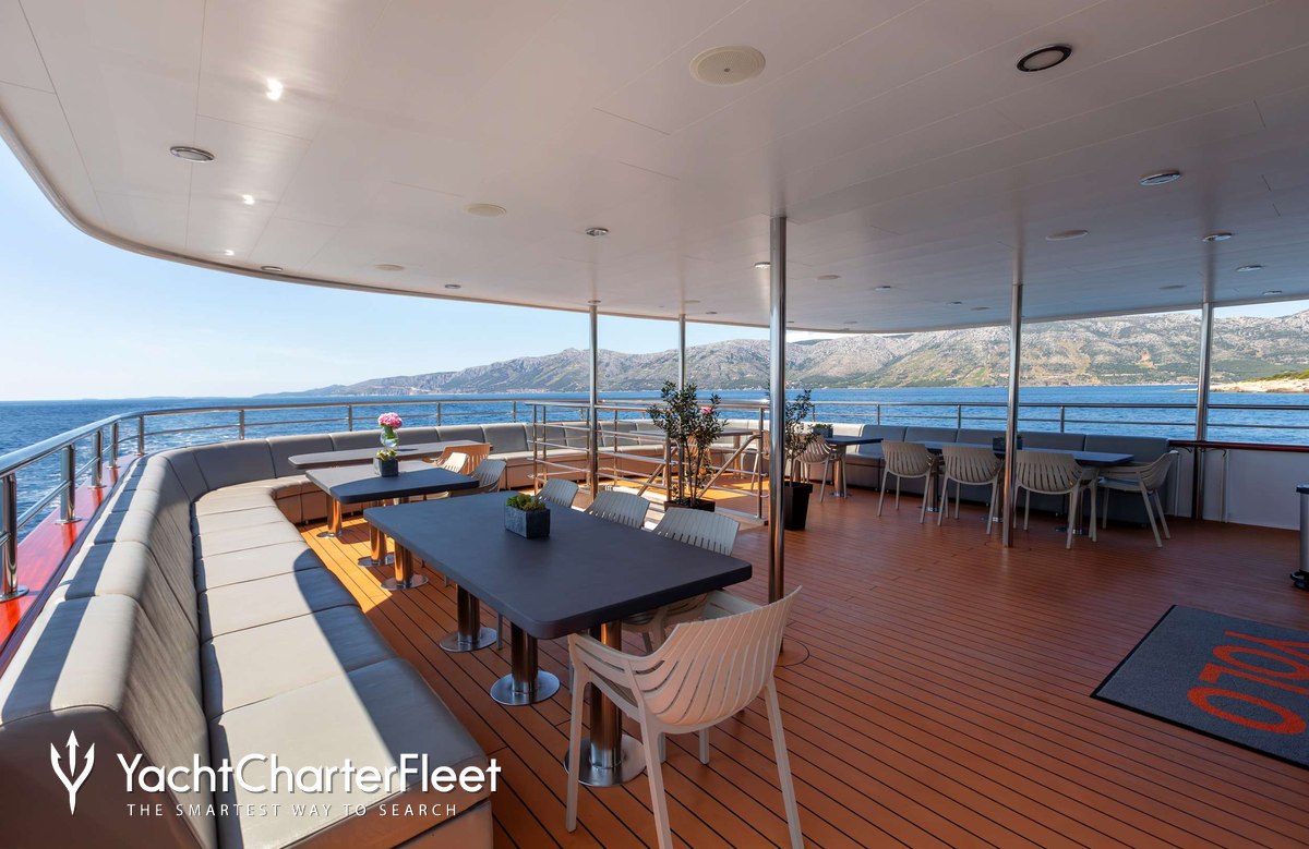 Yolo is notable for her fifteen cabin layout, offering great flexibility for a charter yacht of this size. Built in 2019, She offers guest accommodation for up to 30 guests with a layout comprising eleven double cabins and four twin cabins. She is also capable of carrying up to 10 crew onboard to ensure a relaxed luxury yacht charter experience.