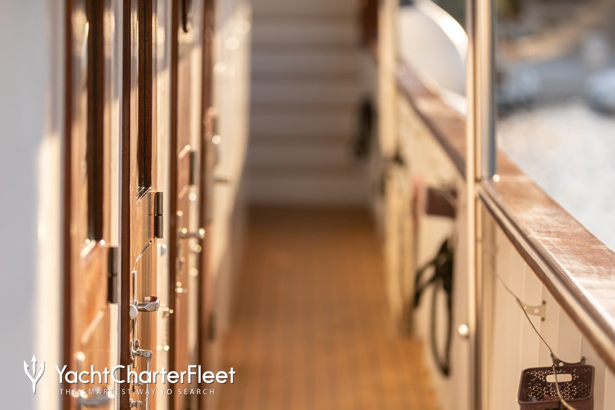 Yolo is built with a GRP hull and GRP superstructure. Yolo comfortably cruises at 8 knots, reaches a maximum speed of 15 knots.