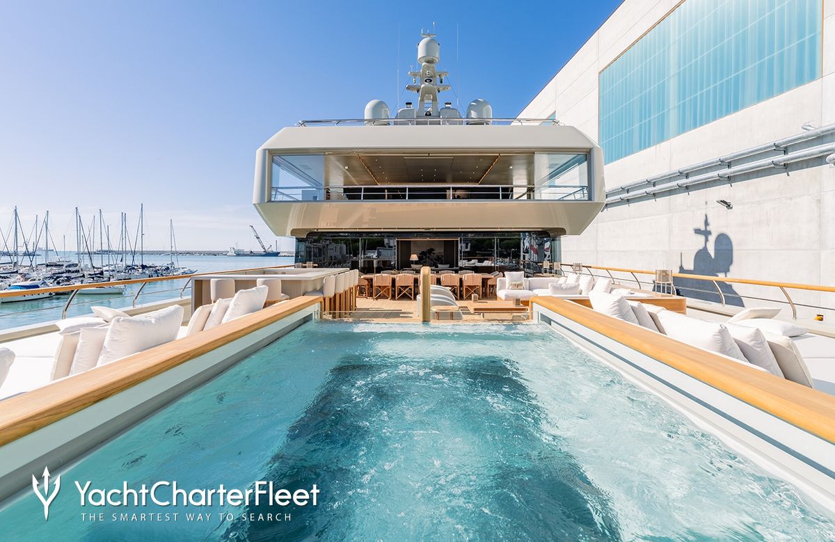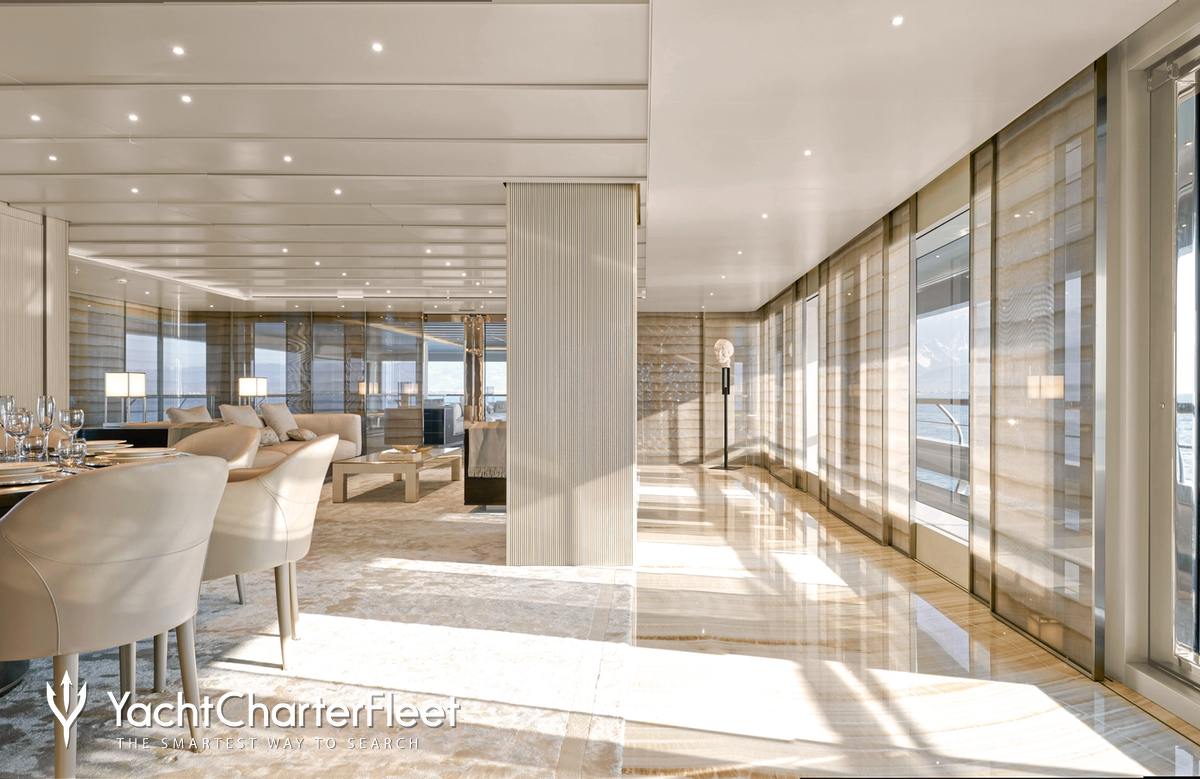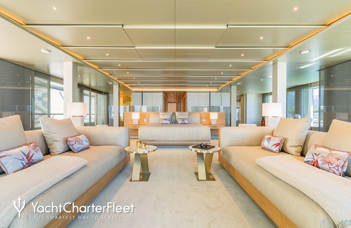 Whatever your activities on your charter, you'll find some impressive features are seamlessly integrated to help you including the underwater lights, adding spectacle and style after dark. Whether you want to work, use social media or stream movies on board this yacht, you can with Wi-Fi connectivity or elsewhere, you can stay comfortable on board whatever the weather, with air conditioning during your charter.