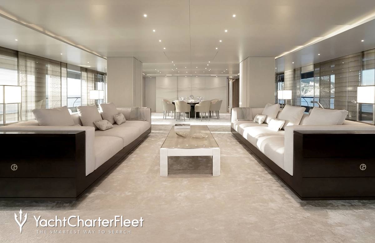 At 72m/236'3", iconic charter yacht Geco By G.Armani features a compelling line-up of living areas and modern amenities and abounds in luxury and comfort