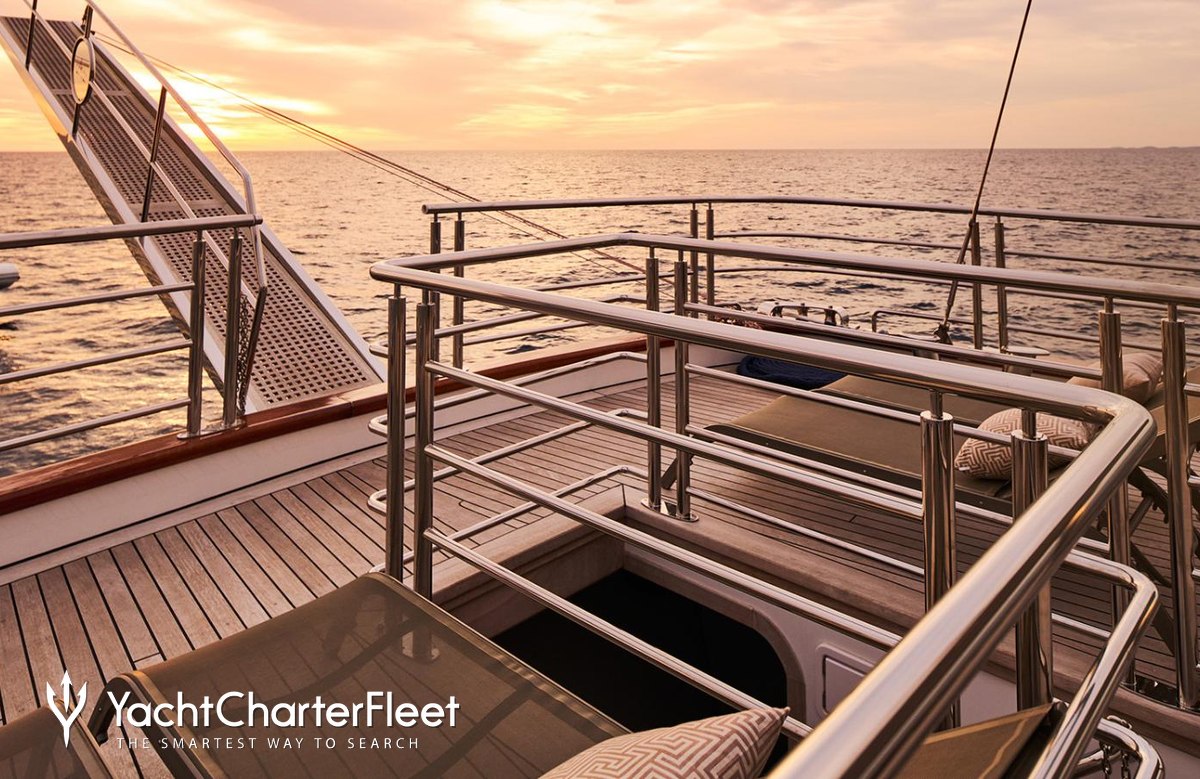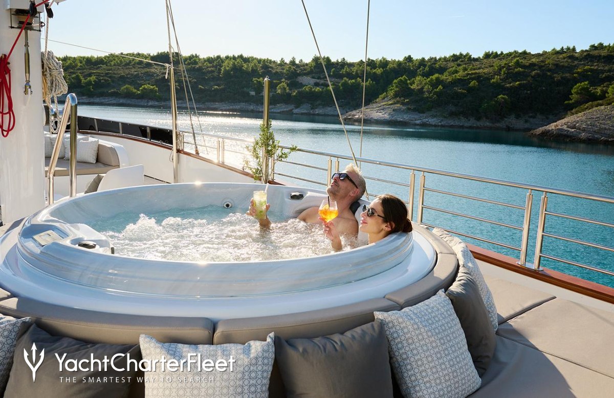 On your charter, you'll find plenty to keep you busy and entertained, particularly a deck jacuzzi, perfect to enjoy the scenery with your favourite drink in hand.