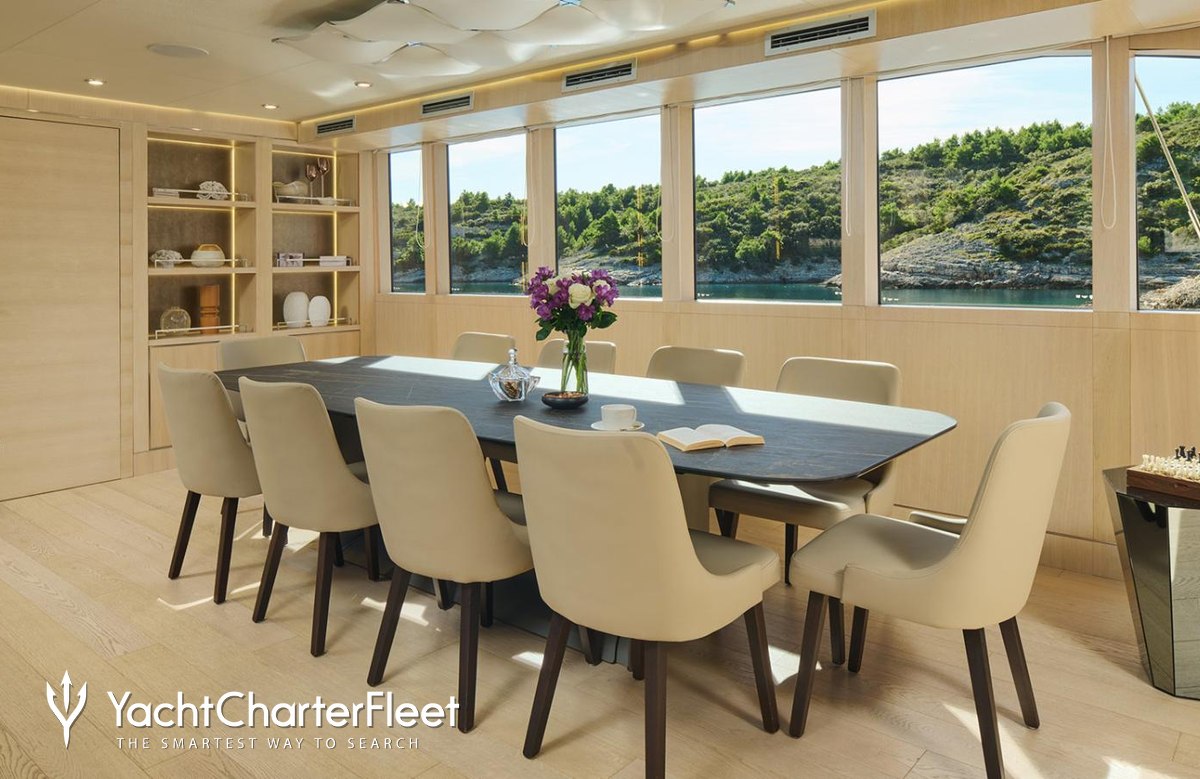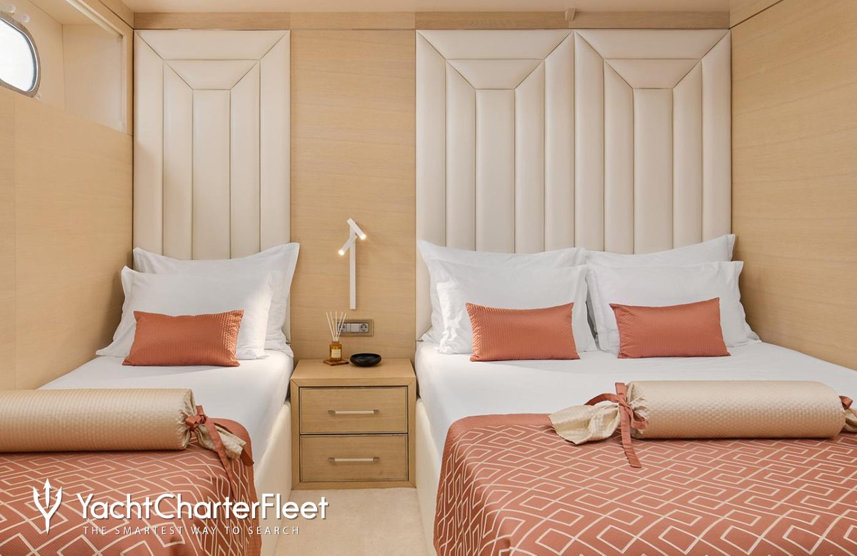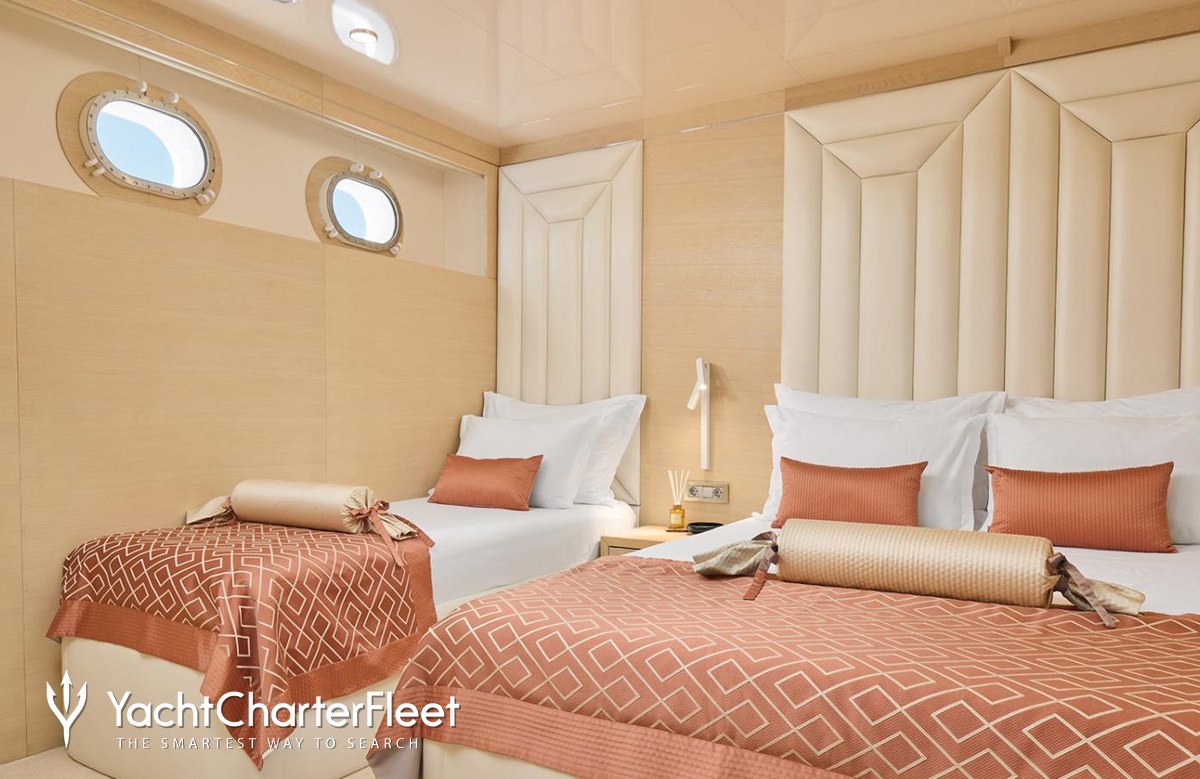 Built in 2021, Love Story offers guest accommodation for up to 12 guests in 6 suites comprising a master suite and two cabins that can operate as twins or doubles. There are 8 beds in total, including 4 king, 2 queen and 2 singles. She is also capable of carrying up to 7 crew onboard to ensure a relaxed luxury yacht charter experience.