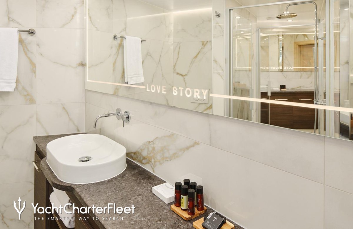 Love Story benefits from some excellent features to improve your charter, particularly Wi-Fi connectivity, allowing you to stay connected at all times, should you wish. Guests will experience complete comfort while chartering thanks to air conditioning.