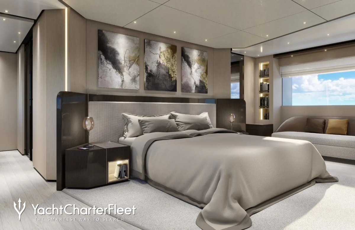 Built in 2024, Pazienza offers guest accommodation for up to 11 guests in 5 suites comprising a master suite located on the main deck, one VIP cabin and one double cabin. She is also capable of carrying up to 5 crew onboard to ensure a relaxed luxury yacht charter experience.