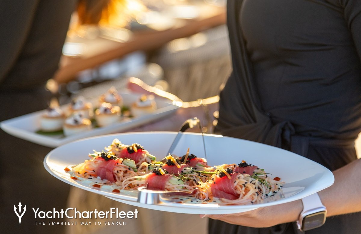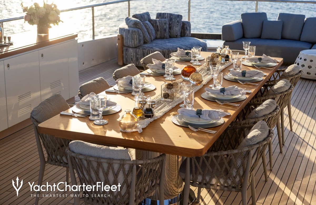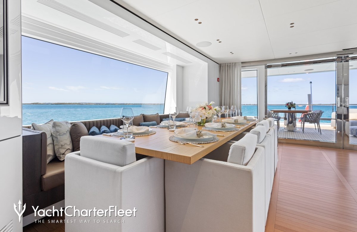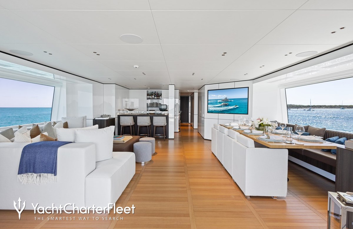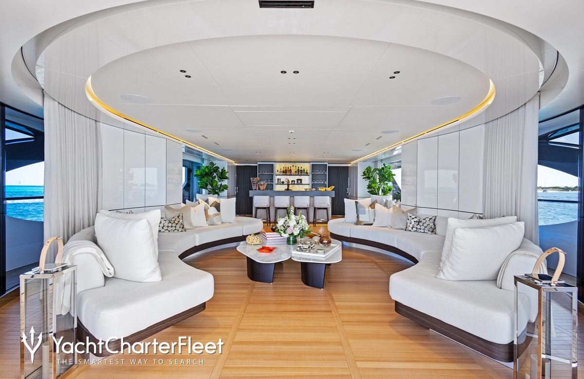 Built in 2024, Wave offers beautifully proportioned decks for exquisite indoor/outdoor living during a luxury yacht charter.