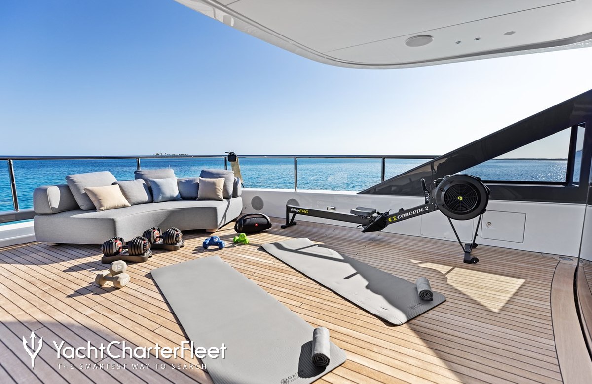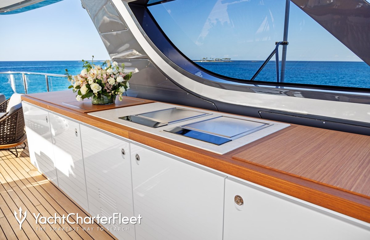 On your charter, you'll find plenty to keep you busy and entertained including the pool, useful to practice your technique or just cool off. Head to the beach club and take advantage of indoor-outdoor living and entertaining plus soak up the bubbles in style in the deck jacuzzi.