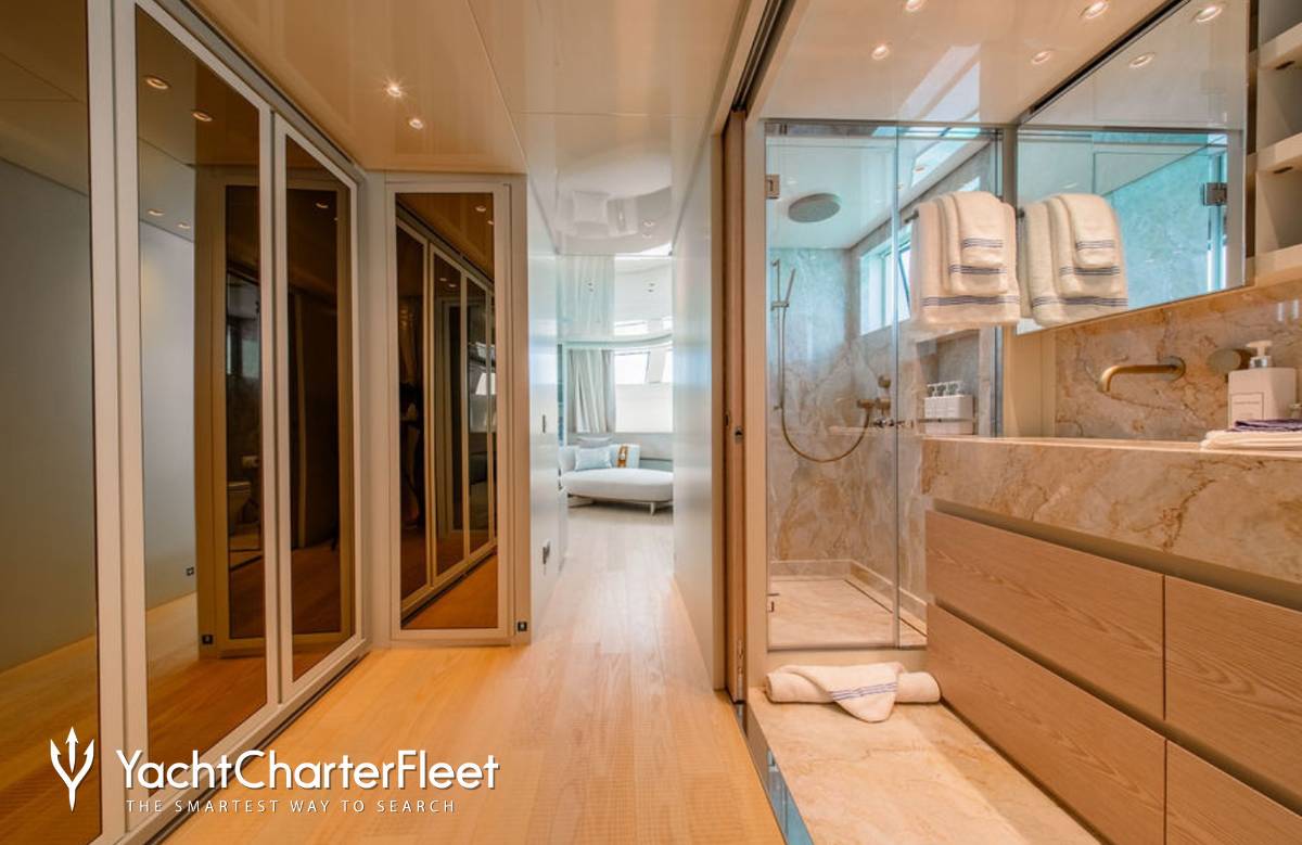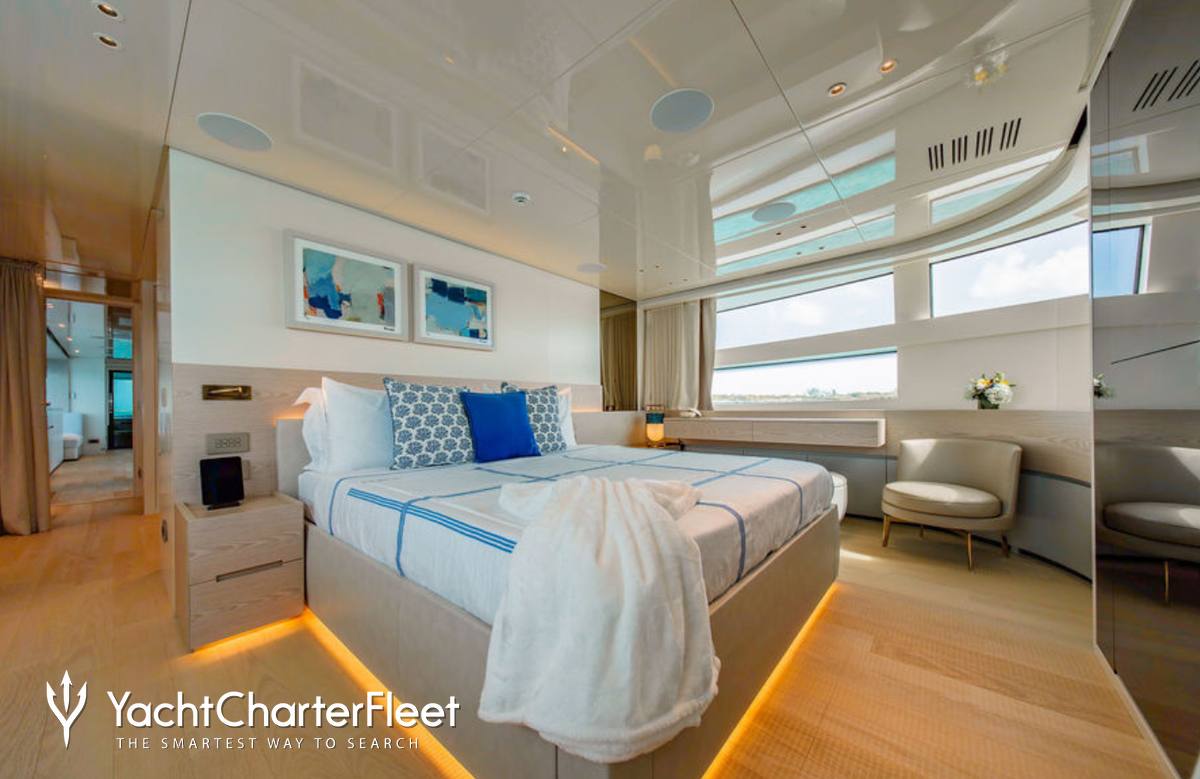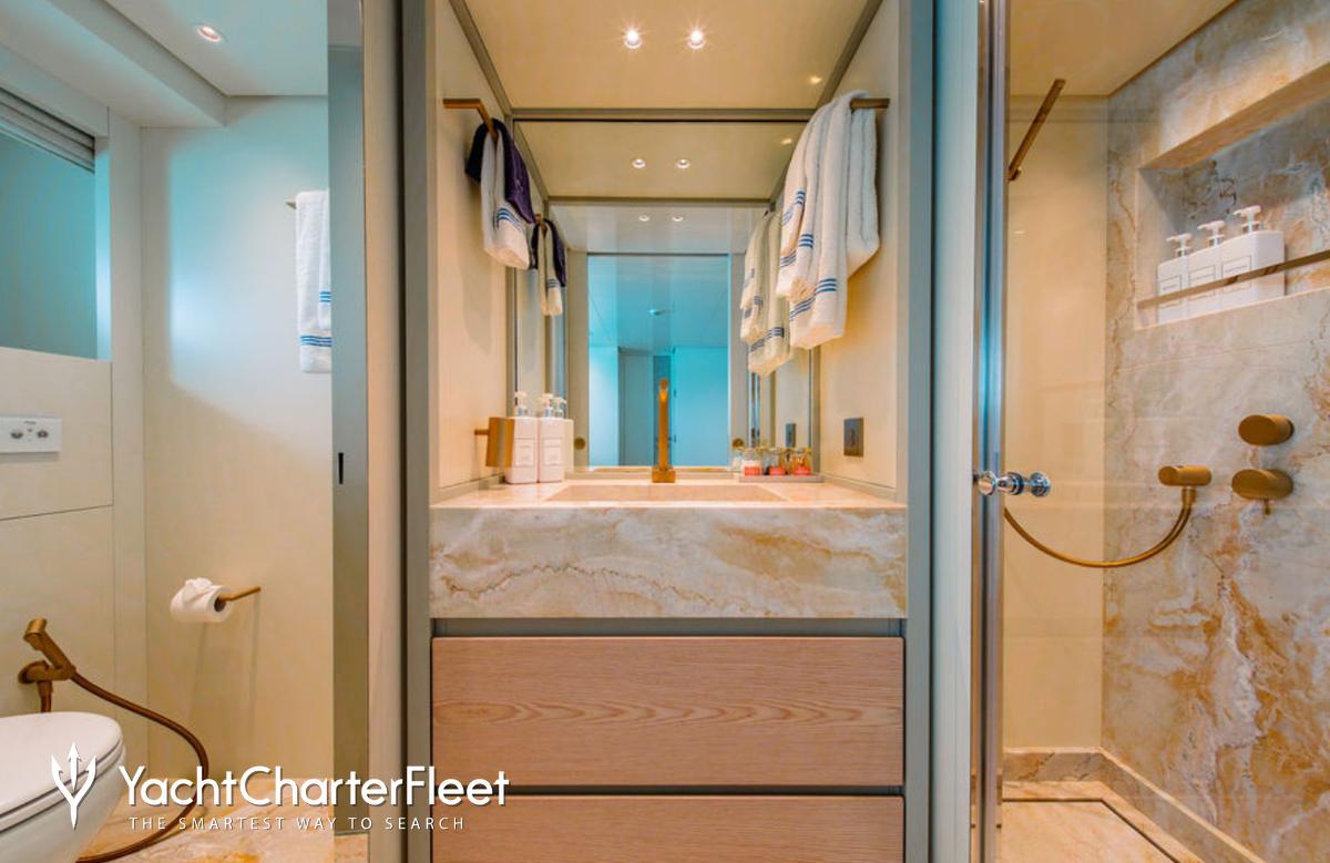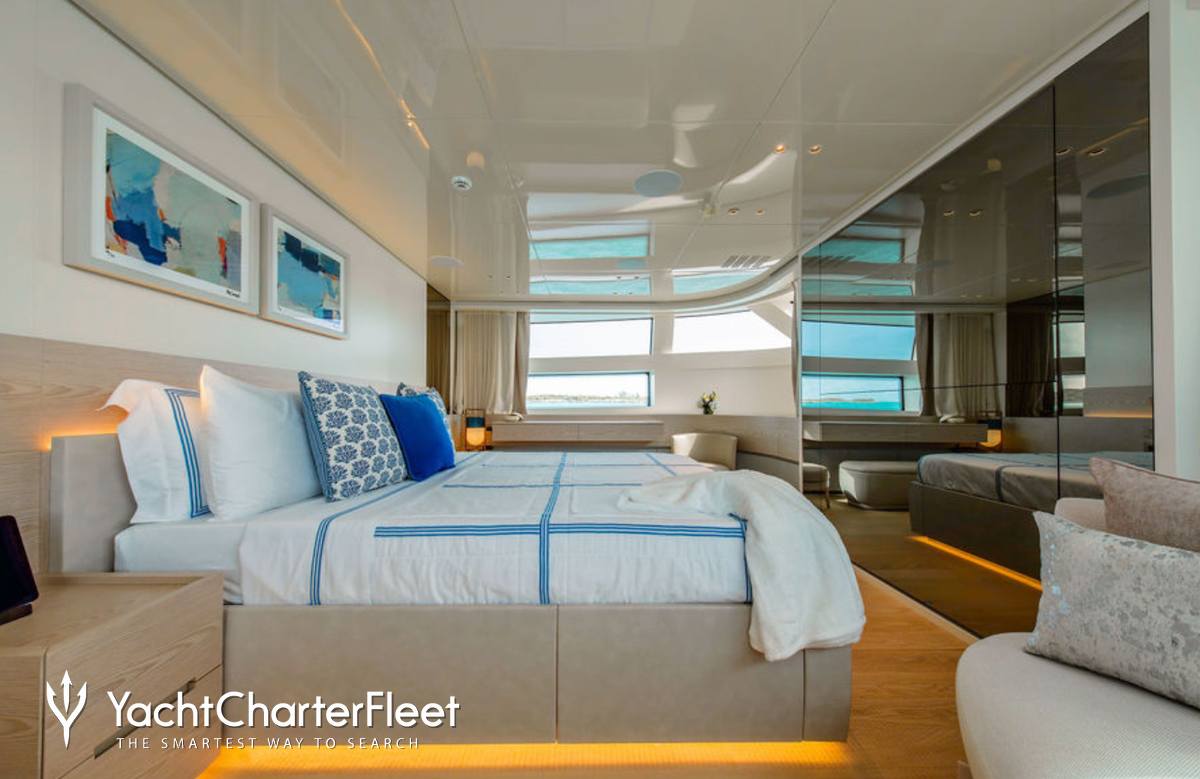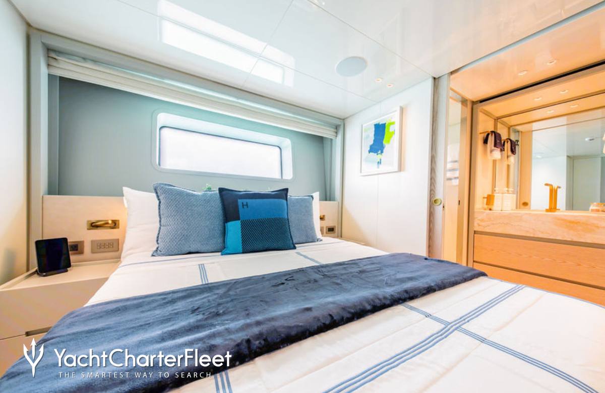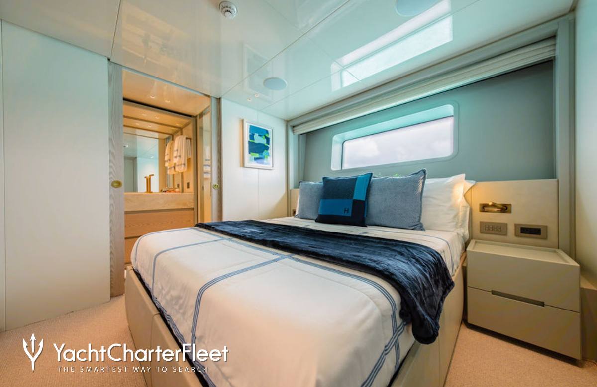 Adios offers guest accommodation for up to 10 guests in 5 suites comprising a master suite, one VIP cabin, one double cabin and two twin cabins. There are 7 beds in total, including 1 king, 2 queen and 4 singles. She is also capable of carrying up to 5 crew onboard to ensure a relaxed luxury yacht charter experience.
