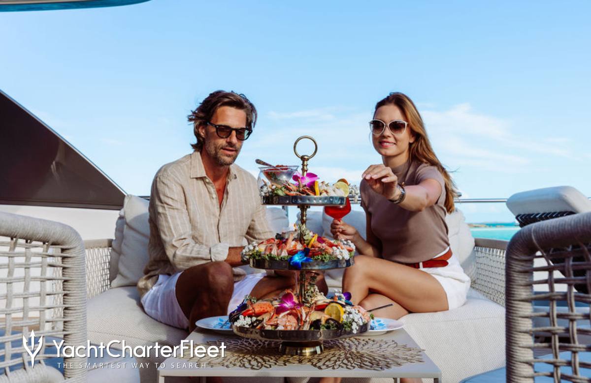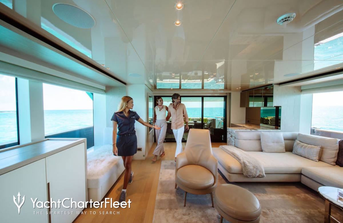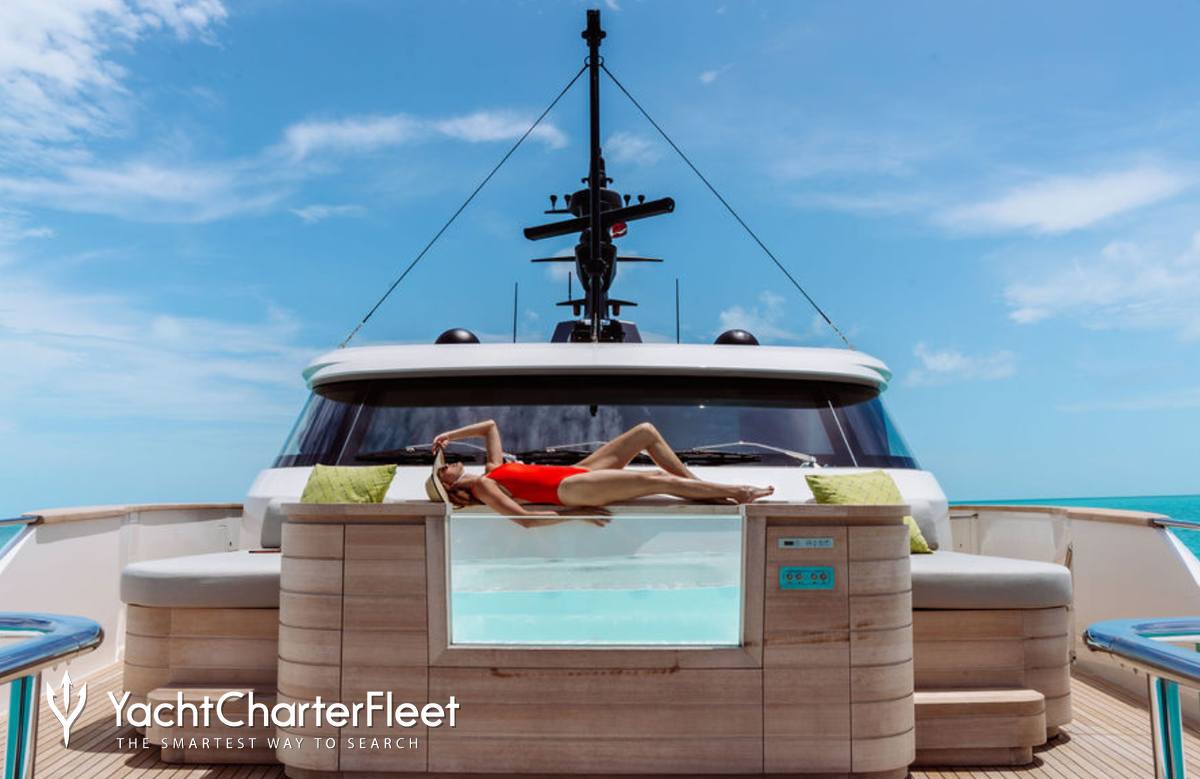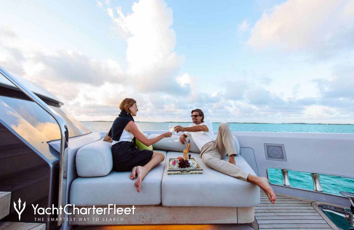 Adios benefits from some excellent features to improve your charter, particularly the underwater lights, adding spectacle and style after dark. Whether you want to work, use social media or stream movies on board this yacht, you can with Wi-Fi connectivity and you can stay comfortable on board whatever the weather, with air conditioning during your charter.