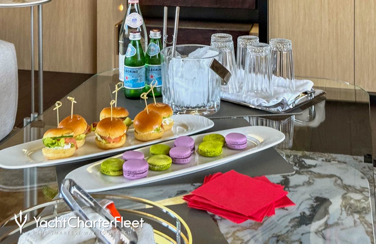 One of the standout highlights is the onboard cuisine, curated by renowned chef Manolis Kalogerakis (formerly of Golden Yacht and Seven S). Since joining the crew, their culinary artistry has become a defining feature of the yacht’s reputation — and will continue to delight guests through 2026.