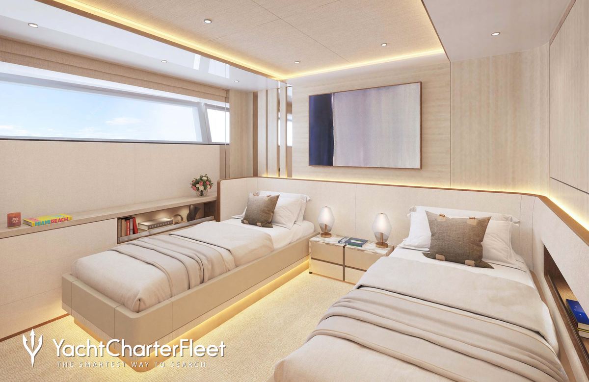 Built in 2025, Xwave offers guest accommodation for up to 10 guests in 5 suites comprising a master suite, two double cabins and two cabins that can operate as twins or doubles. She is also capable of carrying up to 10 crew onboard to ensure a relaxed luxury yacht charter experience.