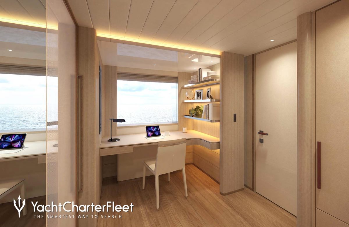 Whatever your activities on your charter, you'll find some impressive features are seamlessly integrated to help you including Wi-Fi connectivity, allowing you to stay connected at all times, should you wish. You can stay comfortable on board whatever the weather, with air conditioning during your charter.