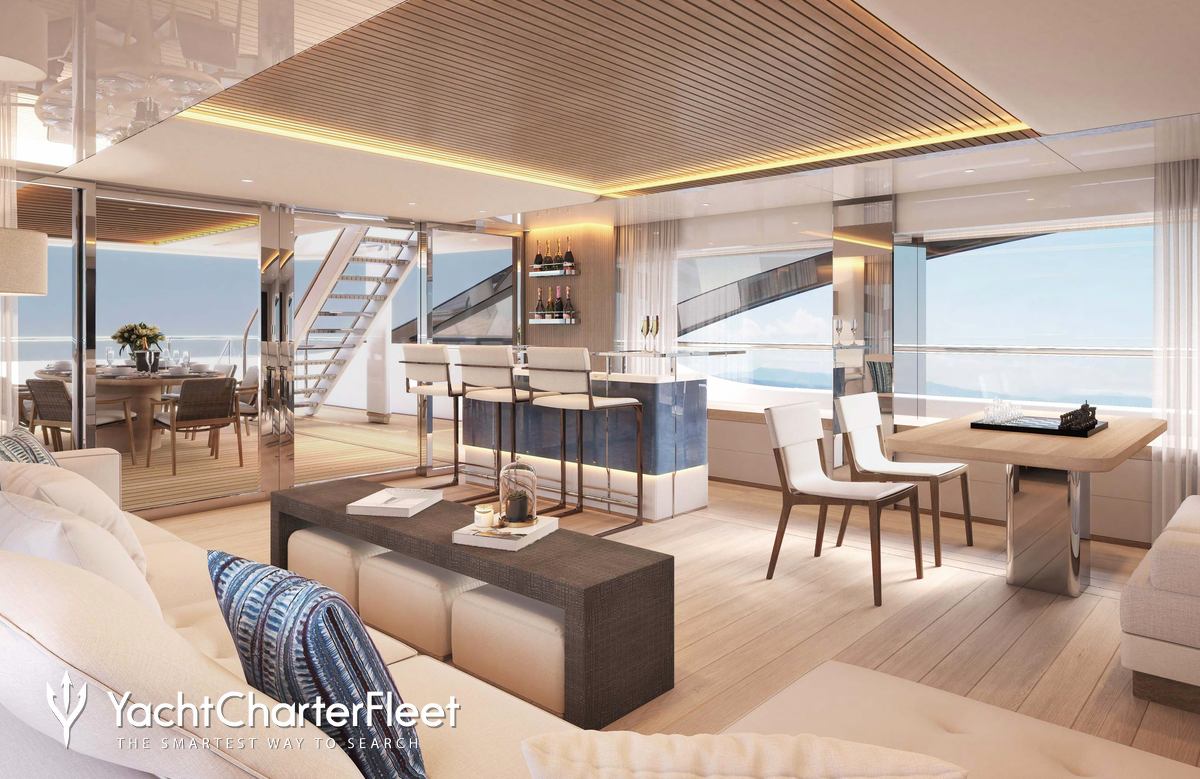 Offering an abundance of social and dining options, as well as a highly attentive crew, luxury charters aboard motor yacht Xwave are set to be truly magical whatever the destination. She is equipped with beach club and gym.