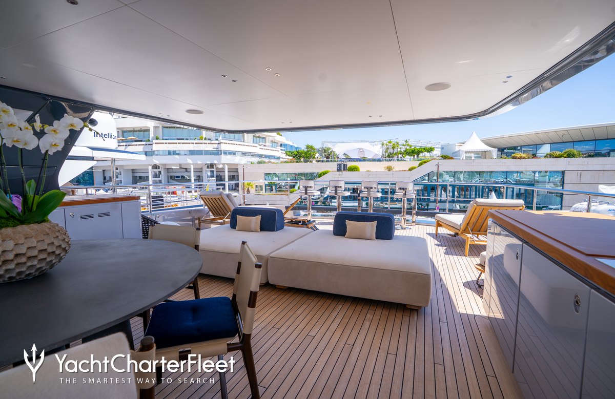 On your charter, you'll find plenty to keep you busy and entertained such as a beach club for you to relax on the edge of the water. Soak up the bubbles in style in the deck jacuzzi.