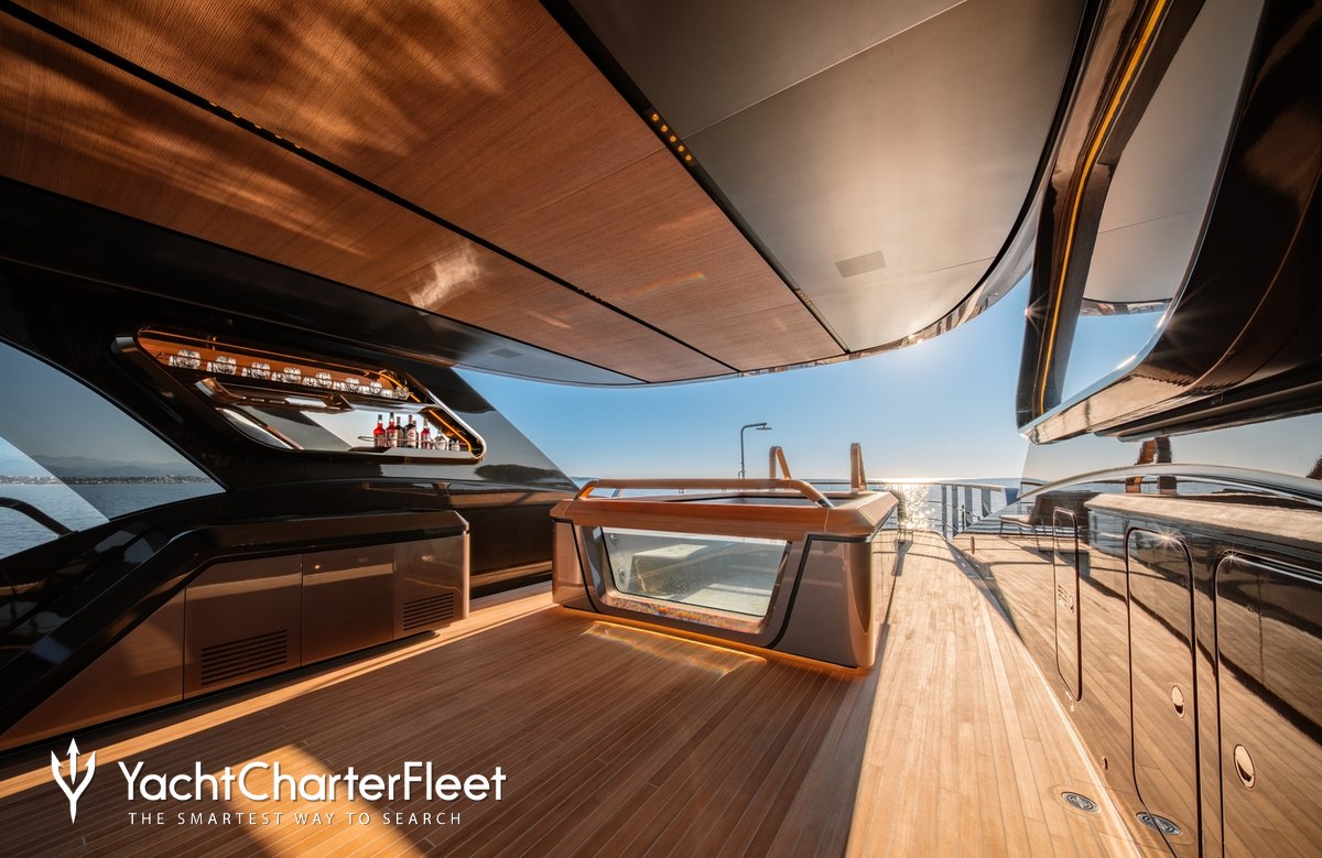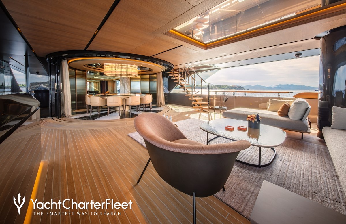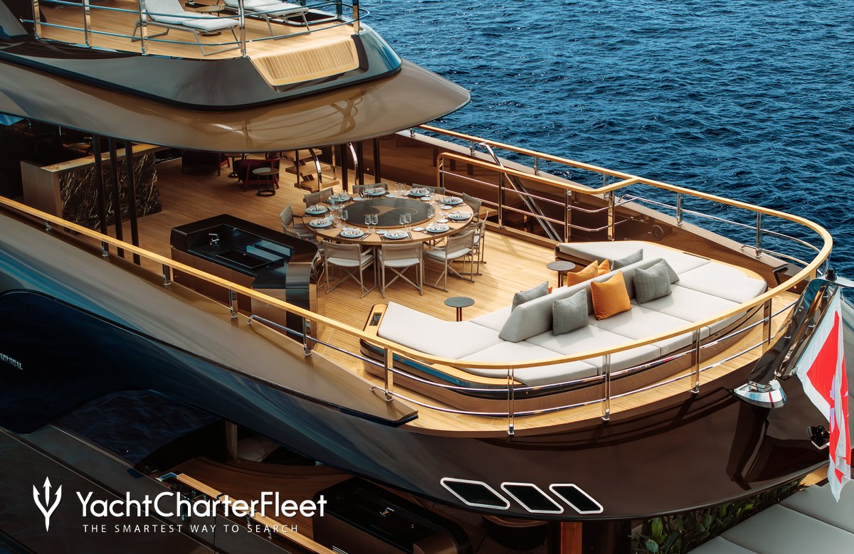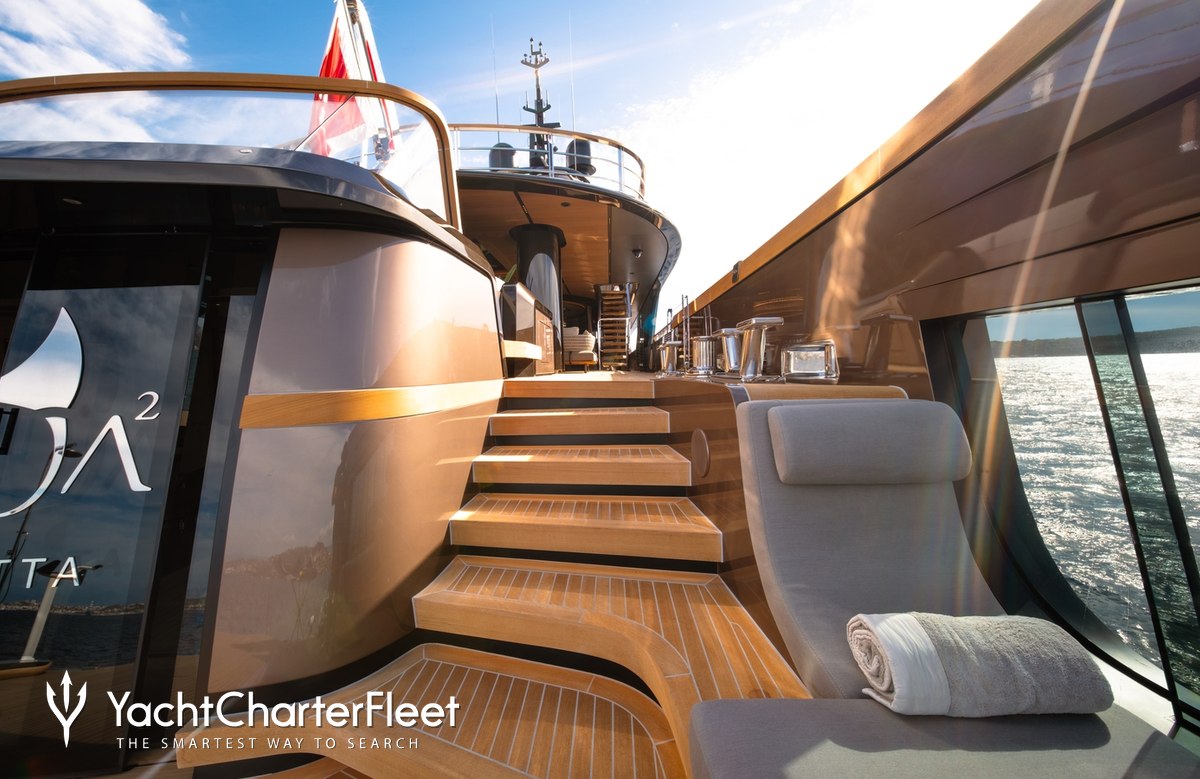 Offering an abundance of social and dining options, as well as a highly attentive crew, luxury charters aboard motor yacht RAJA² are set to be truly magical whatever the destination. She is equipped with beach club and gym.
