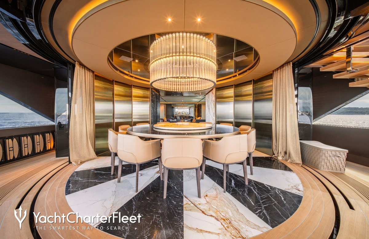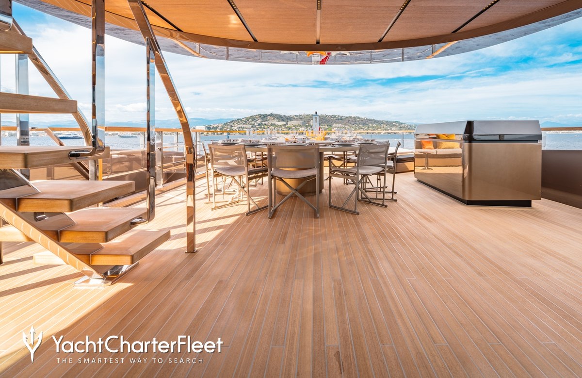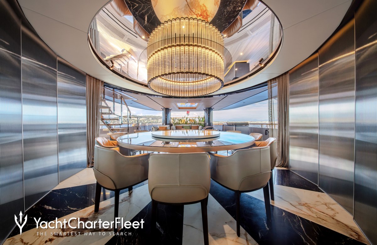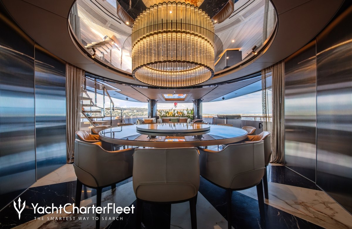 Offering an abundance of social and dining options, as well as a highly attentive crew, luxury charters aboard motor yacht RAJA² are set to be truly magical whatever the destination. She is equipped with beach club and gym.