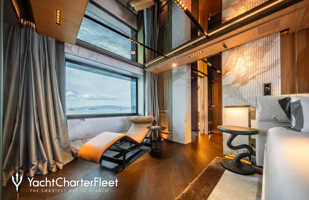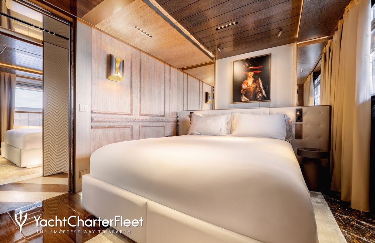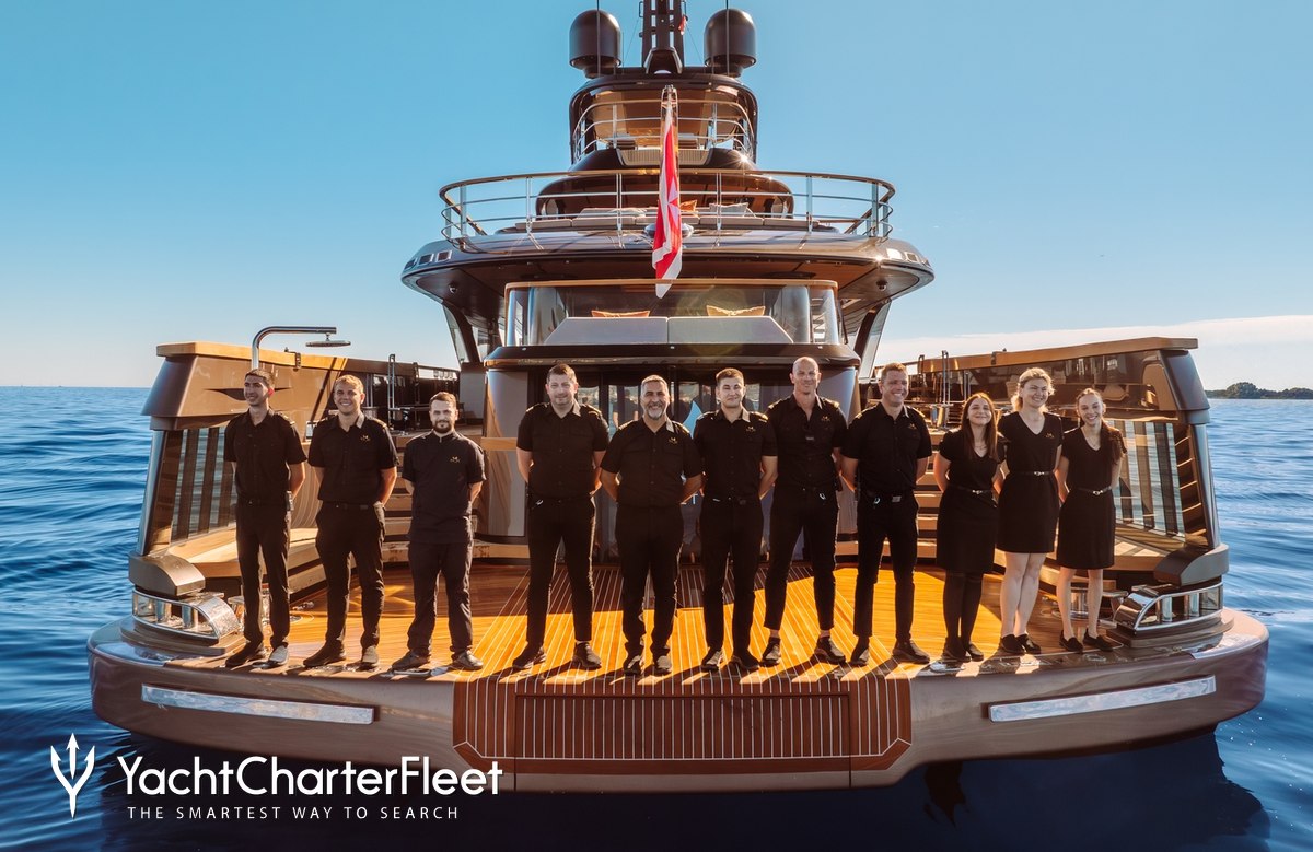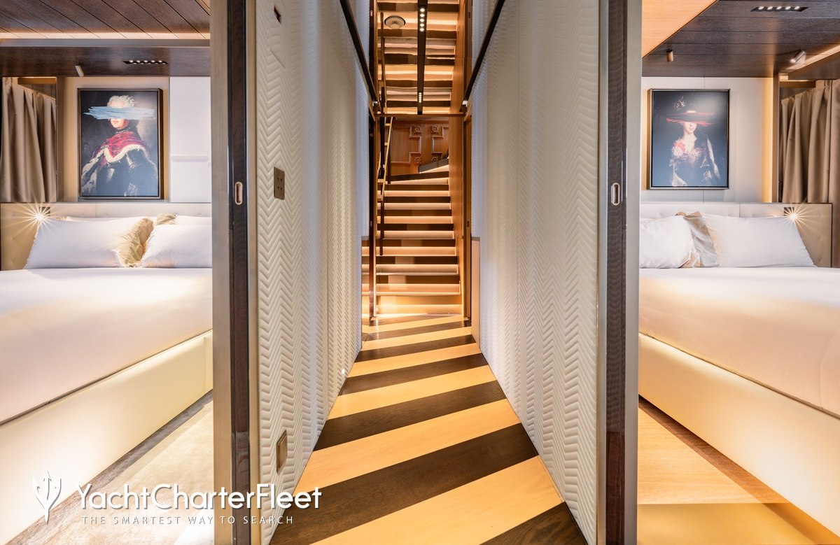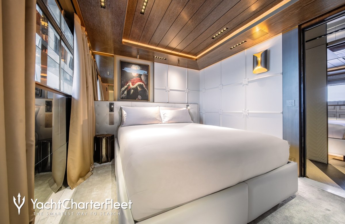 Families will particularly love RAJA² thanks to her child-friendly setup. Built in 2025, She offers guest accommodation for up to 12 guests with a layout comprising a master suite located on the main deck, one VIP cabin, two double cabins and two twin cabins. There are 10 beds in total, including 1 king, 3 queen, 4 singles and 2 pullmans. She is also capable of carrying up to 12 crew onboard to ensure a relaxed luxury yacht charter experience.