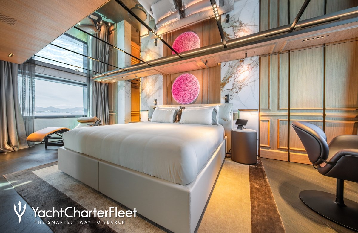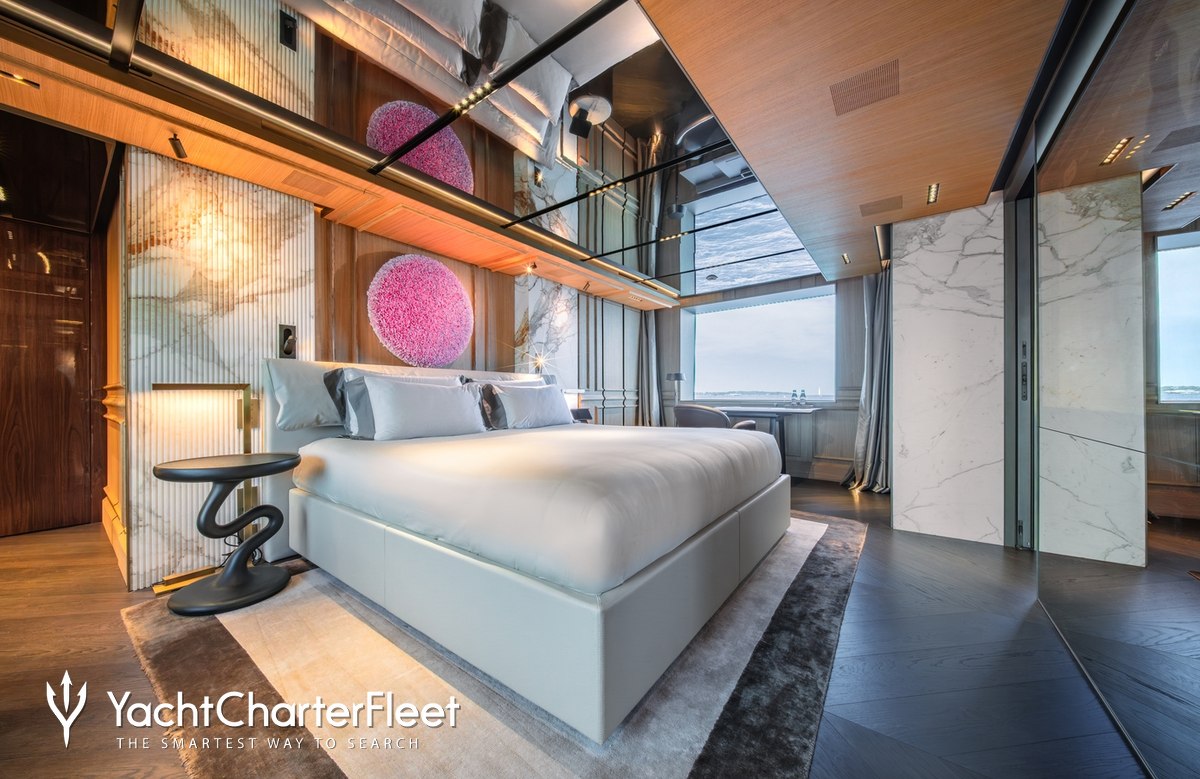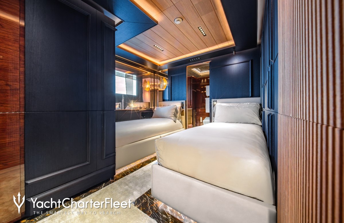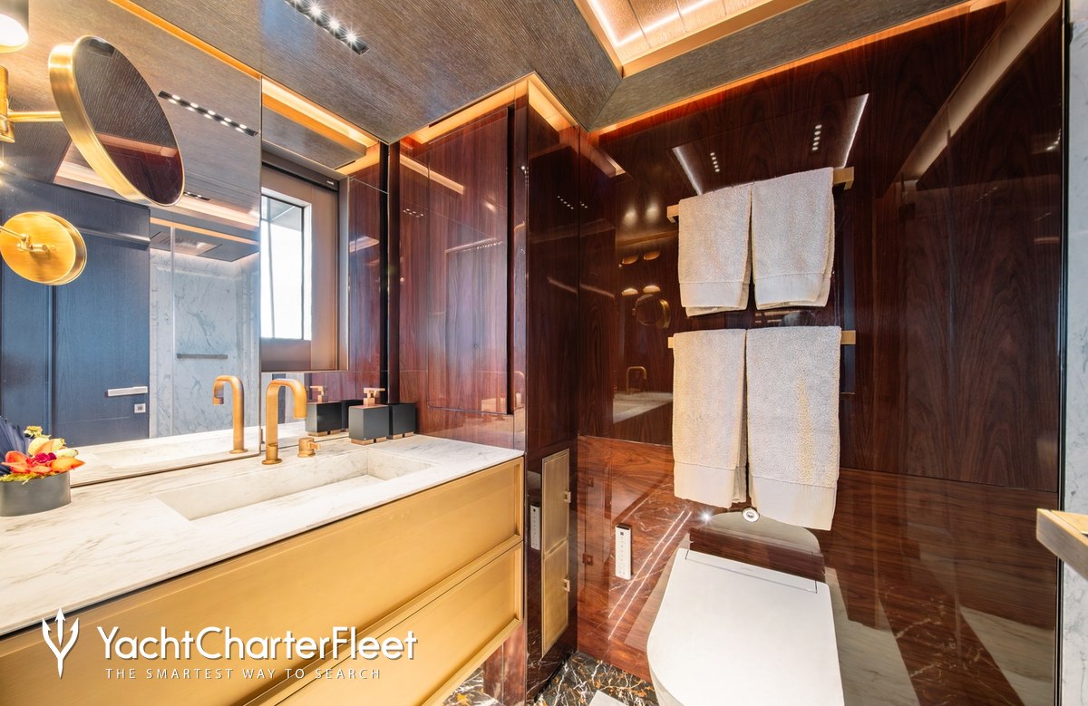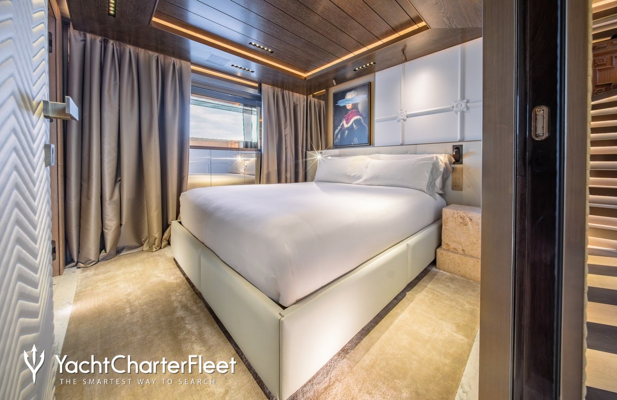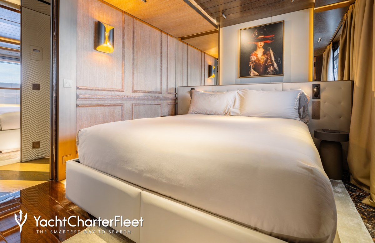 Families will particularly love RAJA² thanks to her child-friendly setup. Built in 2025, She offers guest accommodation for up to 12 guests with a layout comprising a master suite located on the main deck, one VIP cabin, two double cabins and two twin cabins. There are 10 beds in total, including 1 king, 3 queen, 4 singles and 2 pullmans. She is also capable of carrying up to 12 crew onboard to ensure a relaxed luxury yacht charter experience.