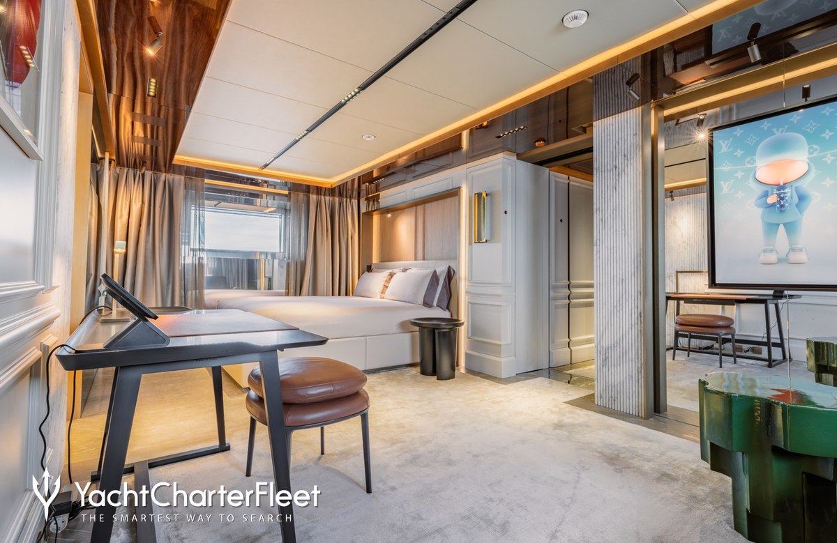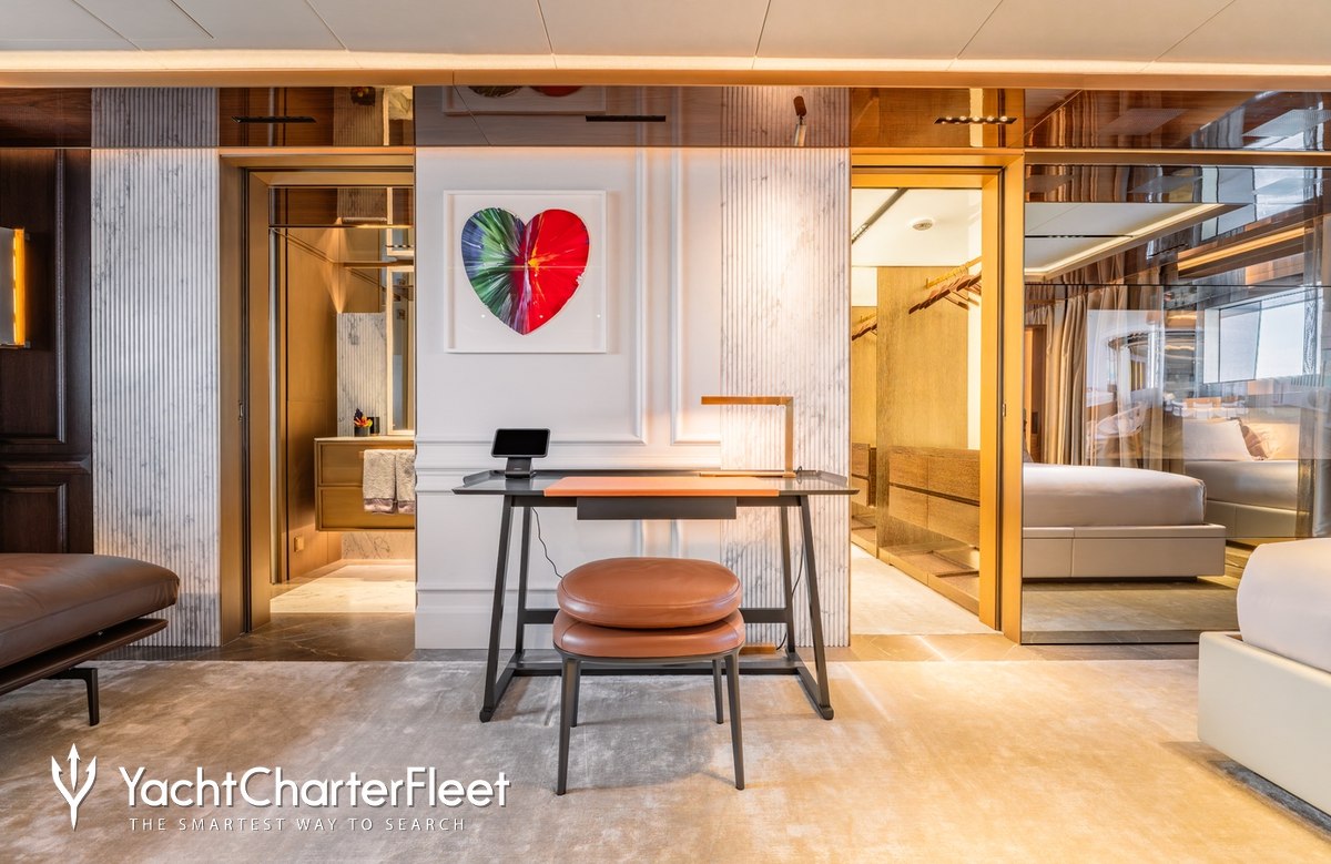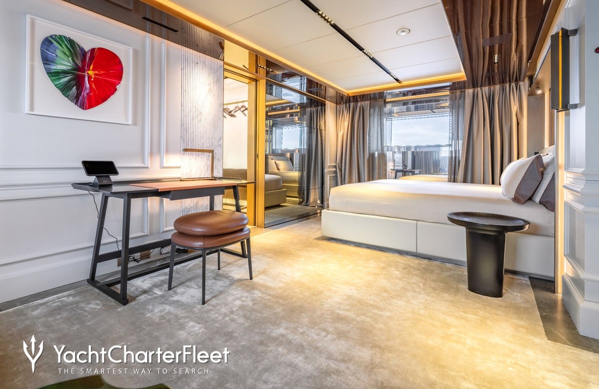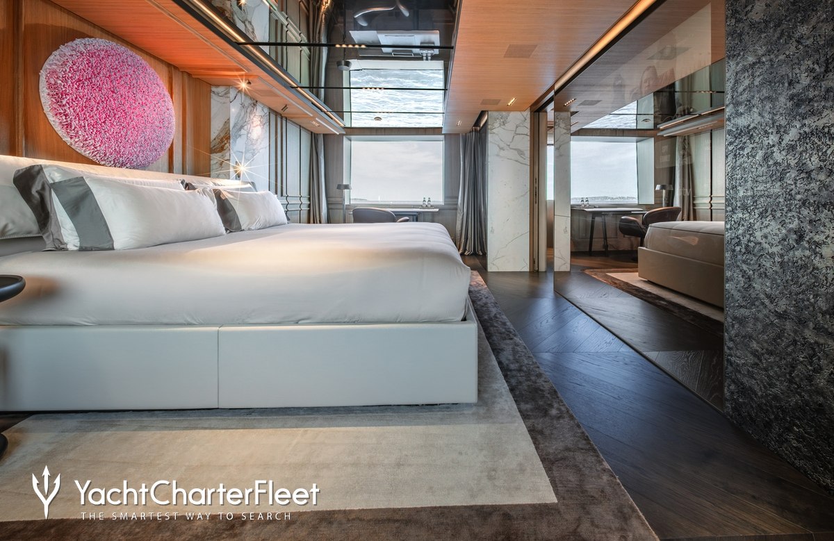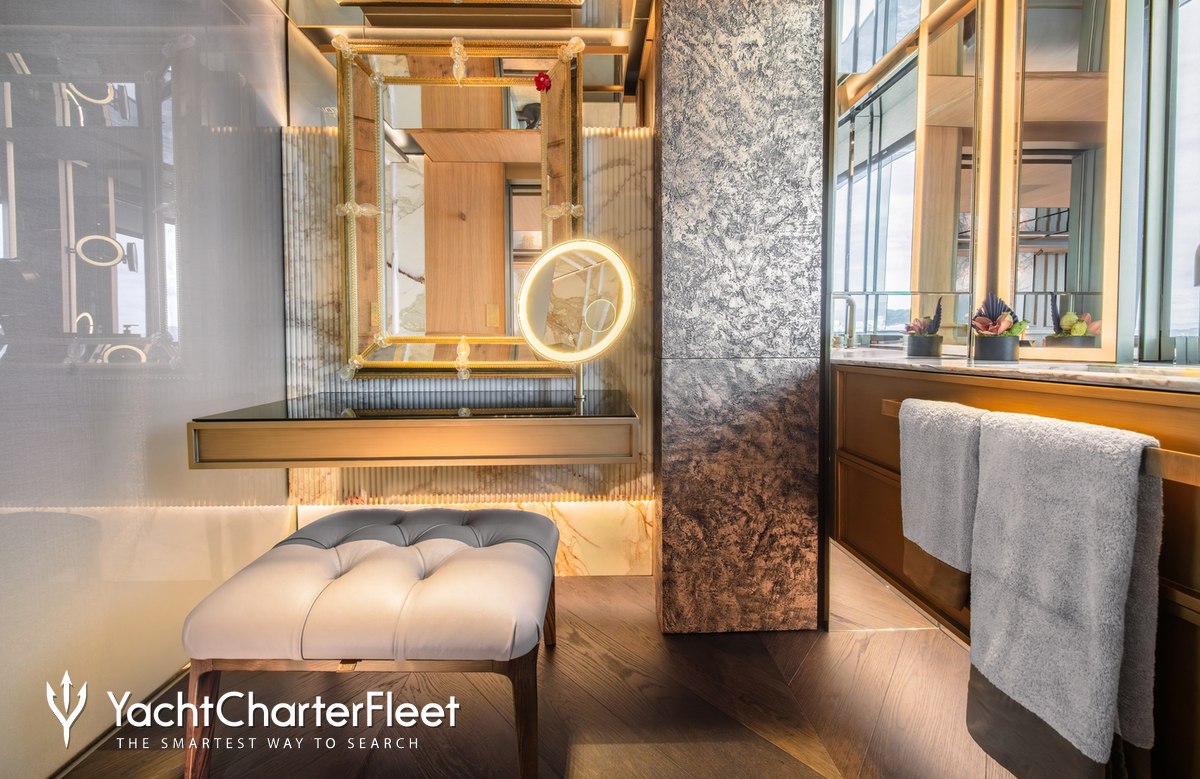 Families will particularly love RAJA² thanks to her child-friendly setup. Built in 2025, She offers guest accommodation for up to 12 guests with a layout comprising a master suite located on the main deck, one VIP cabin, two double cabins and two twin cabins. There are 10 beds in total, including 1 king, 3 queen, 4 singles and 2 pullmans. She is also capable of carrying up to 12 crew onboard to ensure a relaxed luxury yacht charter experience.