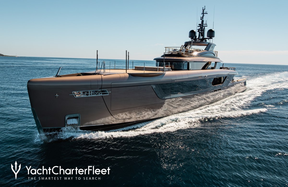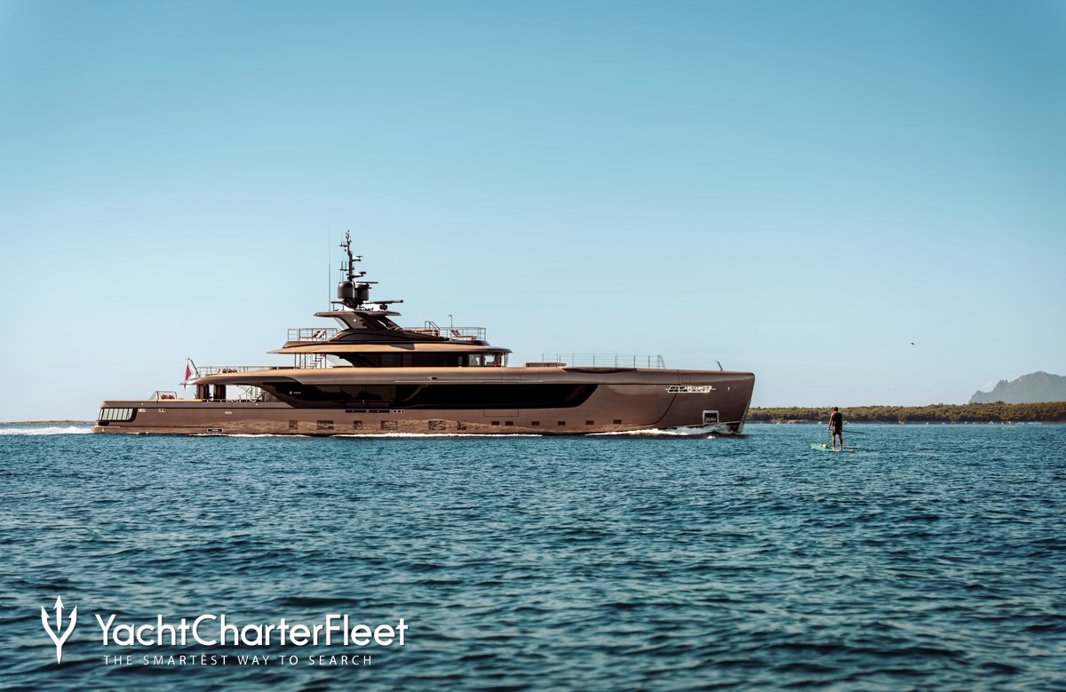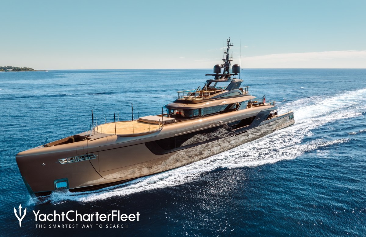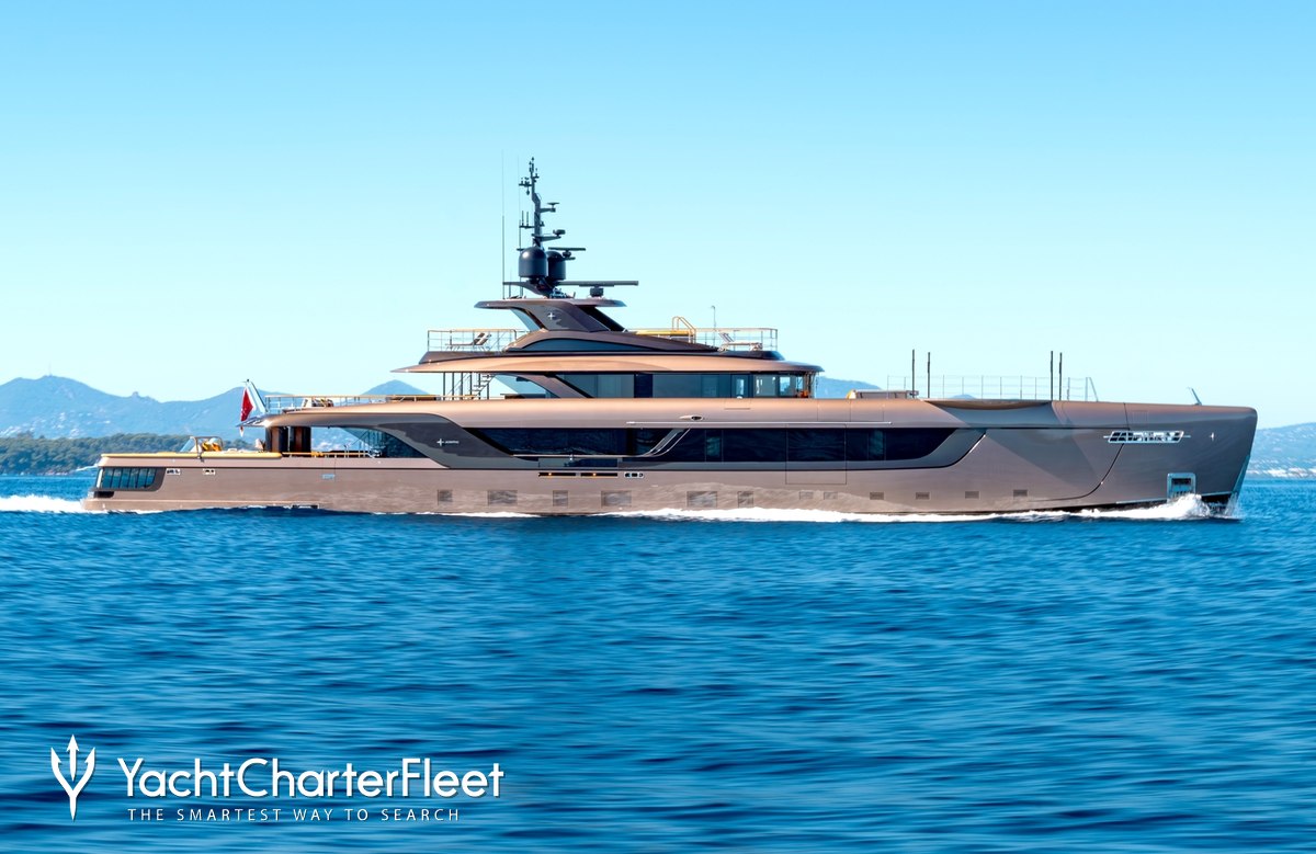 Built with a aluminium hull and aluminium superstructure, she benefits from a semi-displacement hull to provide exceptional seakeeping and impressive speeds. Powered by twin Caterpillar engines, she comfortably cruises at 16 knots, reaches a maximum speed of 18 knots with a range of up to 3,500 nautical miles from her 64,000 litre fuel tanks at 10 knots.