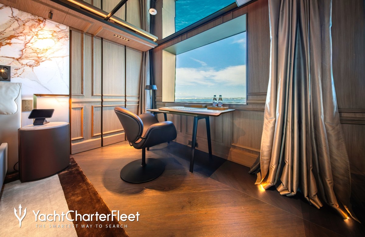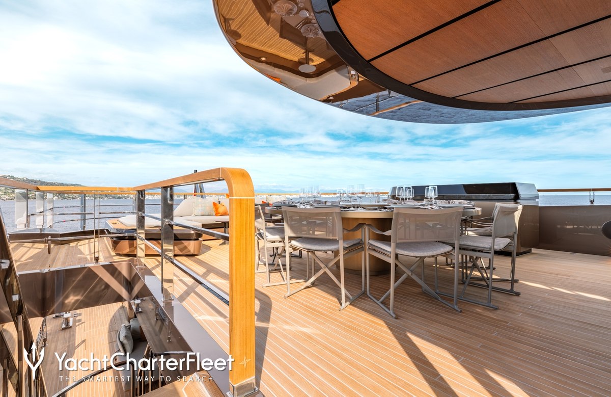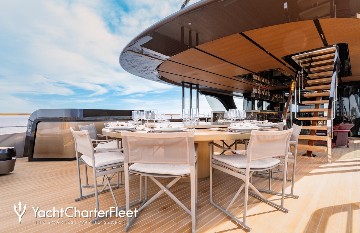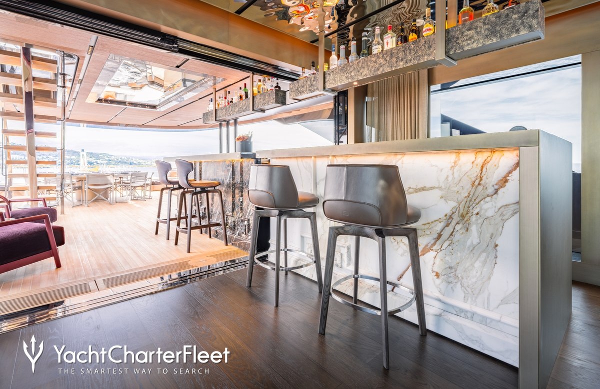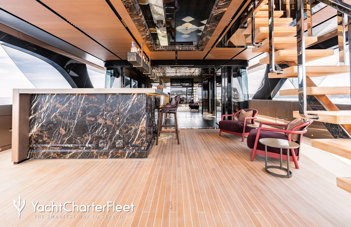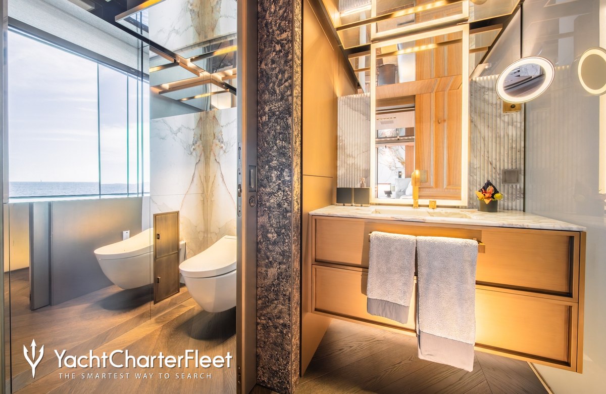 Whatever your activities on your charter, you'll find some impressive features are seamlessly integrated to help you, notably Wi-Fi connectivity, allowing you to stay connected at all times, should you wish. You can stay comfortable on board whatever the weather, with air conditioning during your charter.