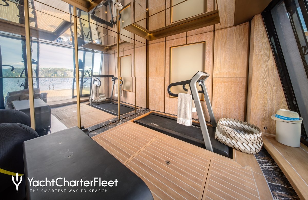 Keeping comfortable and entertained on RAJA² is easy thanks to the available amenities, notably a beach club for you to relax on the edge of the water. Maintain your fitness routine and work out in the well-equipped gym or elsewhere, sit back with a glass of champagne in the deck jacuzzi.