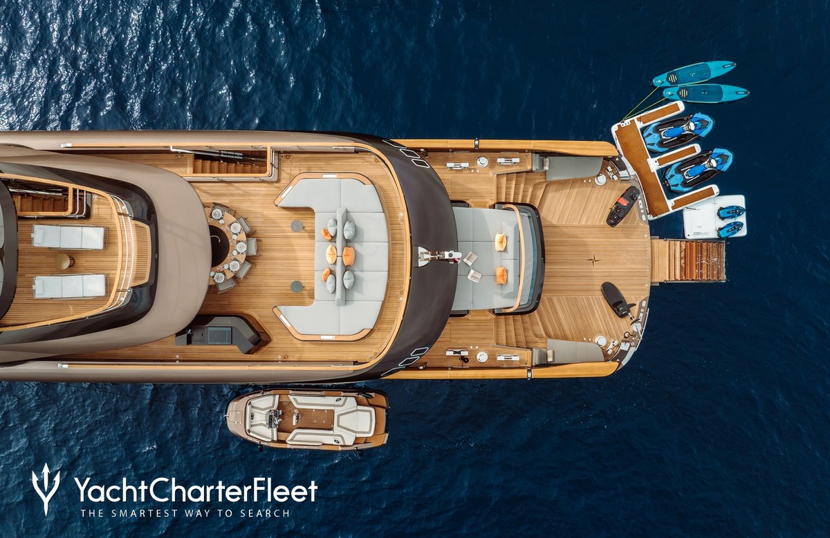 When not cruising RAJA² has onboard an incredible selection of water toys and accessories for you and your guests to connect with the waters around you. Principle among these is a Flyboard for soaring over the water or swimming like a dolphin. Take to the sea on the Jet Skis offering you power and control on the water. Also there are waterskis that are hugely entertaining whether you are a beginner or a seasoned pro. If that isn't enough RAJA² also features a seabob, wakeboards, kayaks, scuba diving equipment, inflatable water toys. RAJA² also sports a 13m/42'8" Chase Tender to transport you with ease.