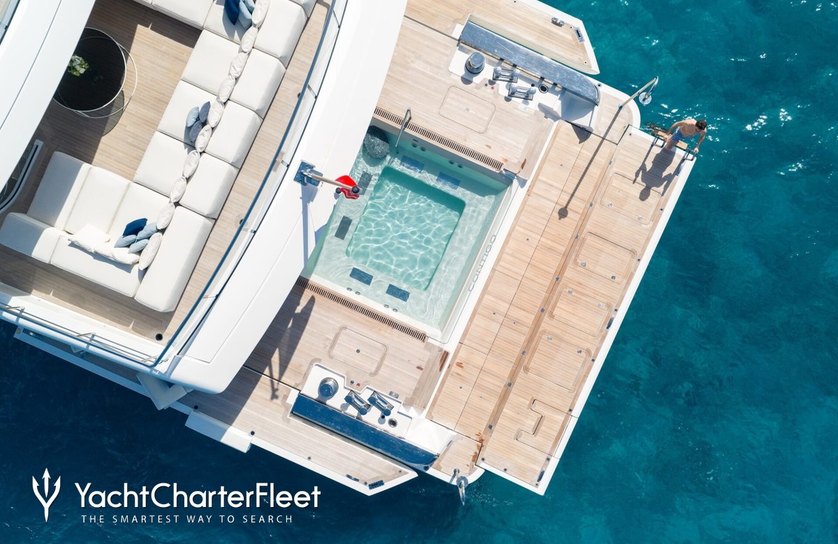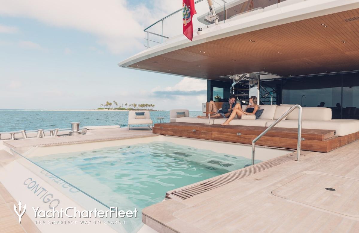 A charter on Contigo is comfortable and convenient thanks to the provided amenities such as a serene luxury spa, for the utmost in relaxation. Revive yourself after an intense workout in the sauna and in addition head to the beach club and take advantage of indoor-outdoor living and entertaining. A gym with all the latest equipment is available for a good work out or elsewhere, sit back with a glass of champagne in the deck jacuzzi.