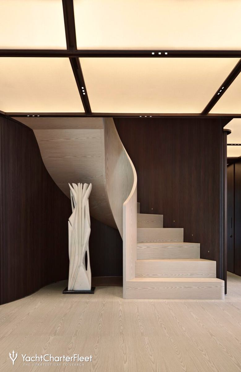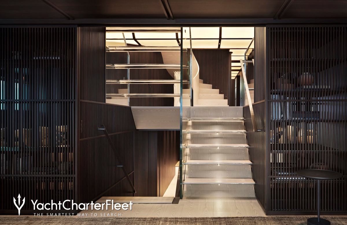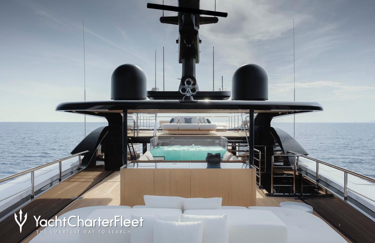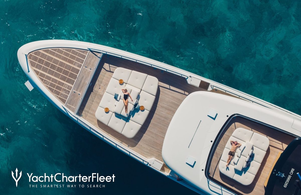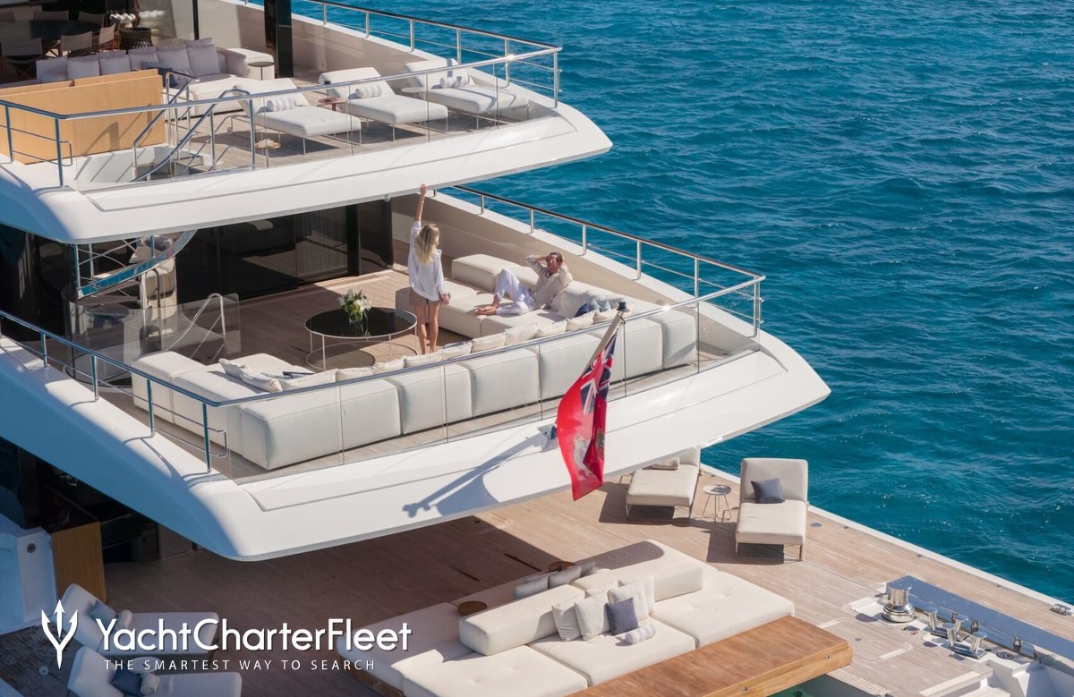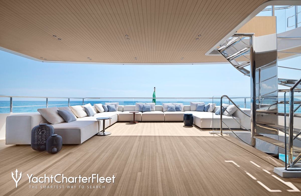 Families will particularly love Contigo thanks to her child-friendly setup. Built in 2024, She offers guest accommodation for up to 10 guests with a layout comprising a master suite and four double cabins. The master suite incorporates its own study and dressing room. The bed configuration includes 1 king, 2 queen, 4 singles and 2 pullmans. She is also capable of carrying up to 11 crew onboard to ensure a relaxed luxury yacht charter experience.