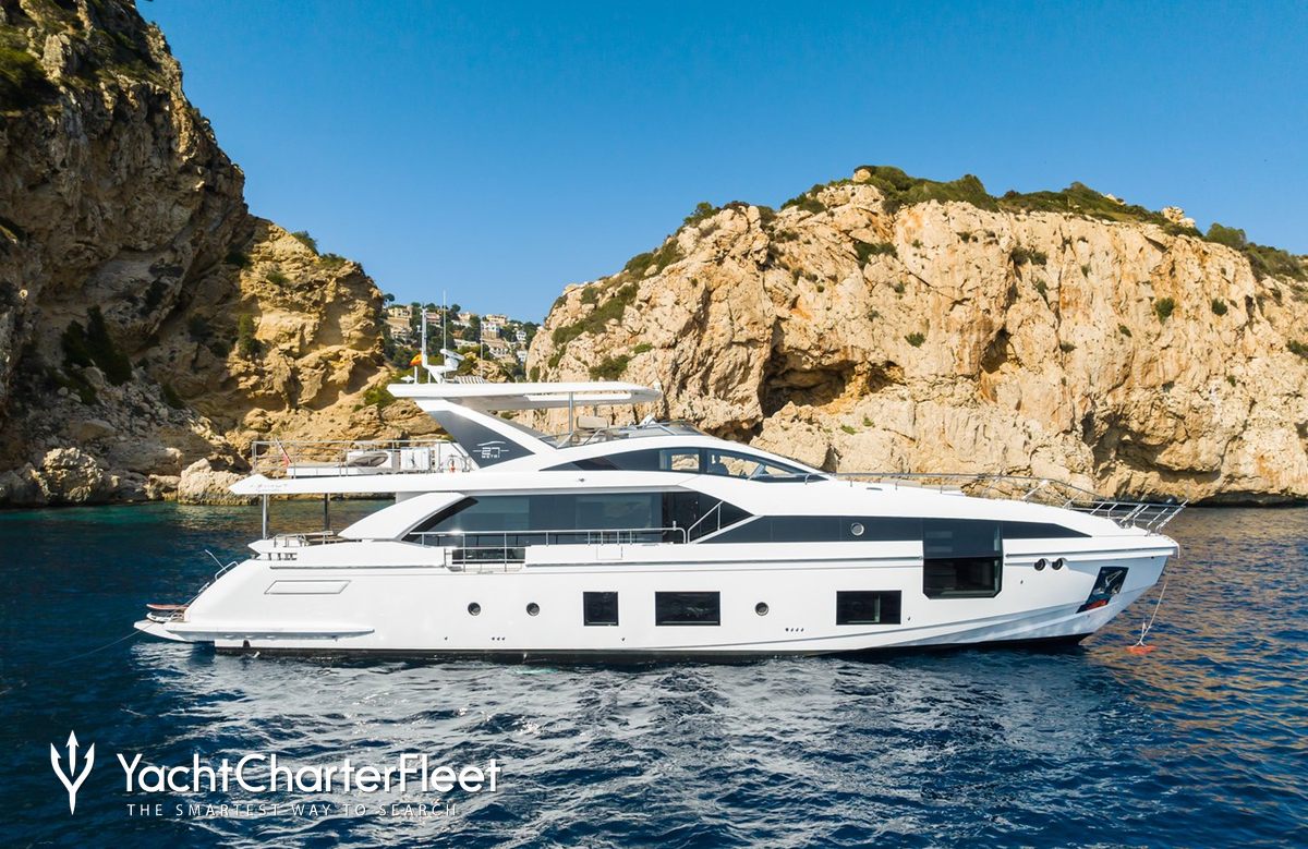 The 26.78m/87'10" 'Zozo' motor yacht built by the Italian shipyard Azimut is available for charter for up to 10 guests in 5 cabins. This yacht features interior styling by Italian designer Achille Salvagni.