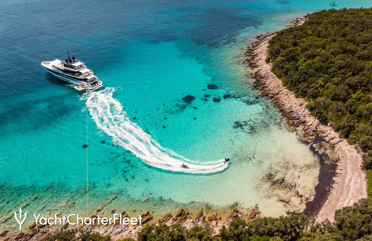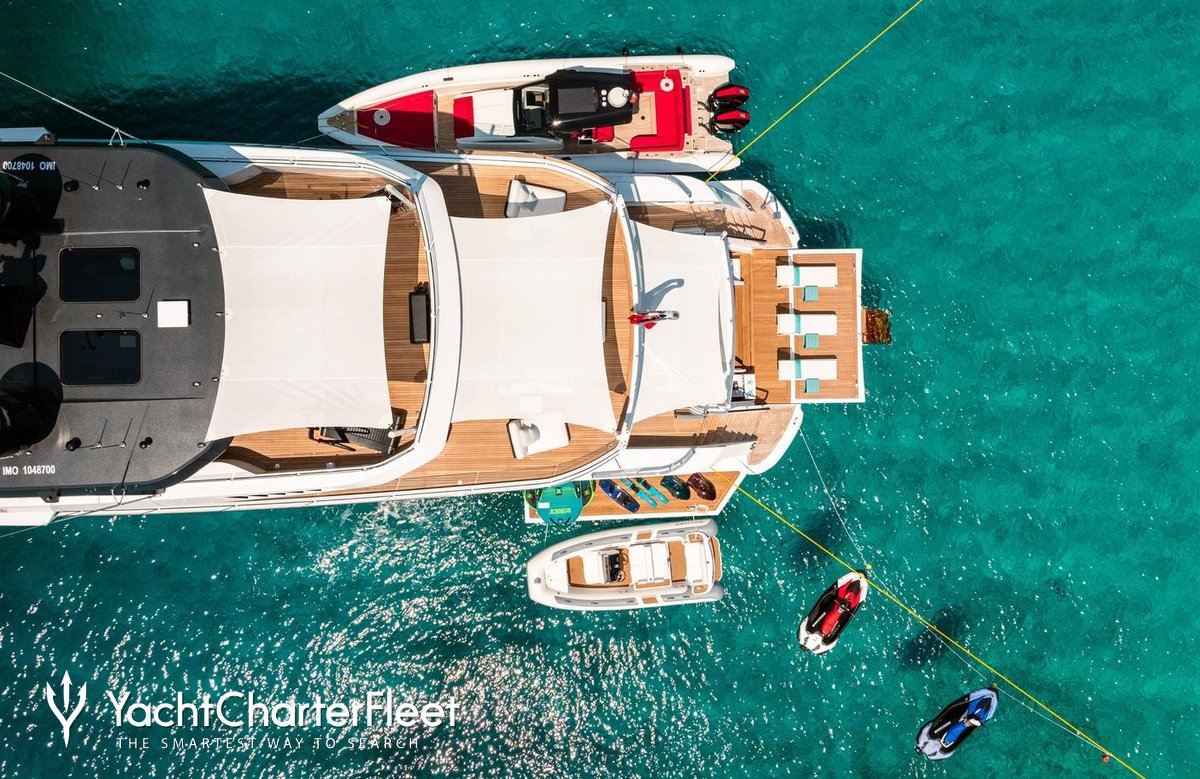 Motor yacht Eva4Eva boasts a wealth of convivial spaces, perfect for luxury yacht charters with families of friends, offering ample opportunities to kick back and relax, or enjoy the water on the yacht's array of water toys, the choice is yours.