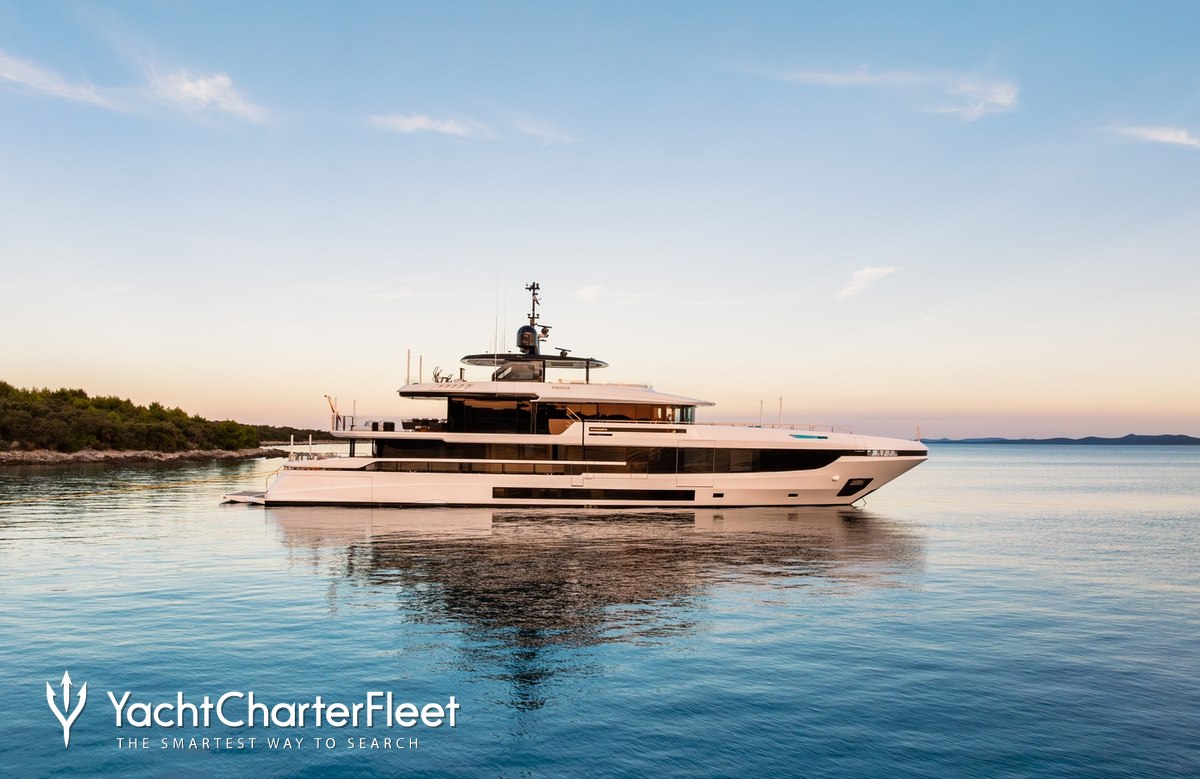 Built in 2025, Eva4Eva offers guest accommodation for up to 12 guests in 6 suites comprising a master suite, one VIP cabin, two double cabins and two twin cabins. She is also capable of carrying up to 9 crew onboard to ensure a relaxed luxury yacht charter experience.