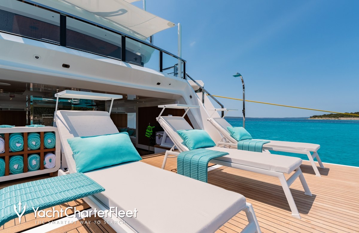Whatever your activities on your charter, you'll find some impressive features are seamlessly integrated to help you, notably Wi-Fi connectivity, allowing you to stay connected at all times, should you wish. Guests will experience complete comfort while chartering thanks to air conditioning.