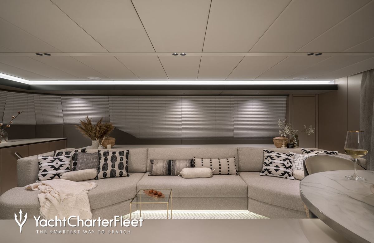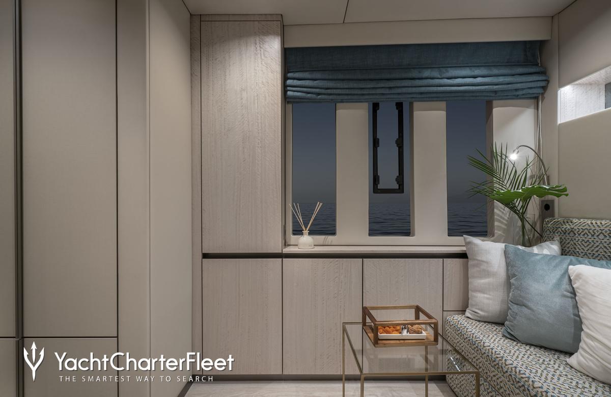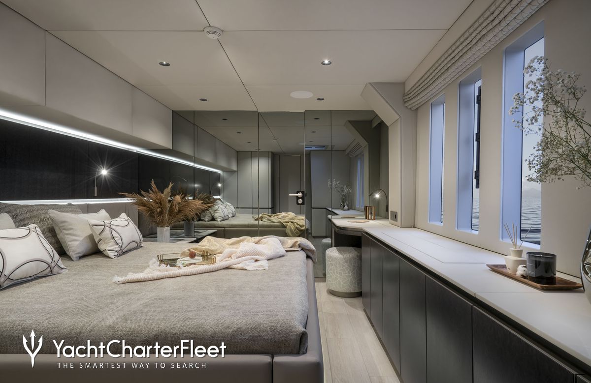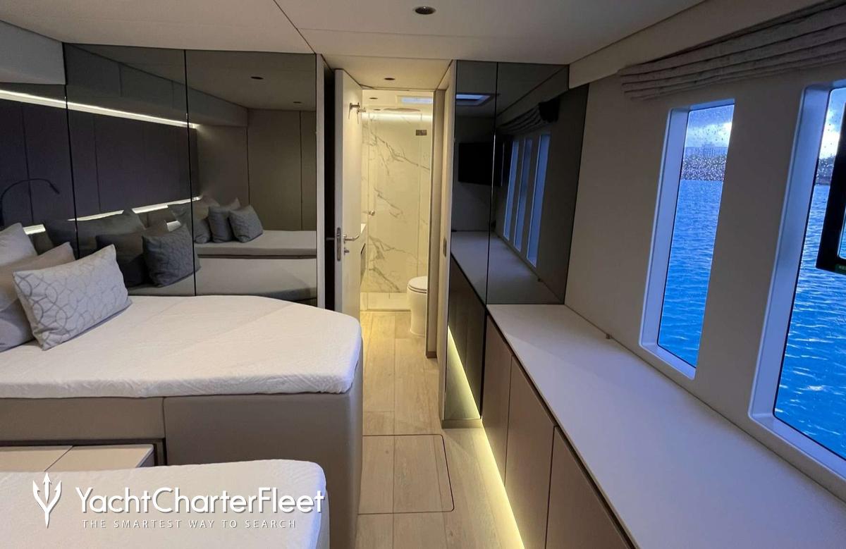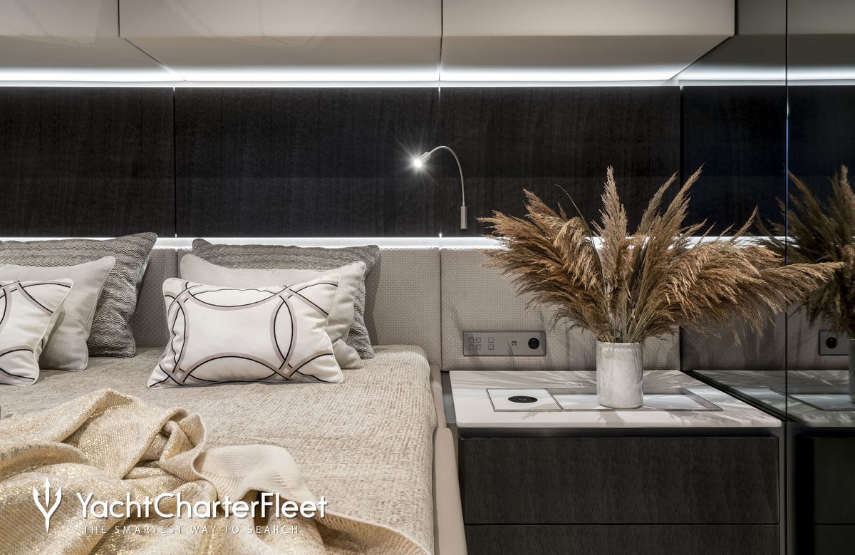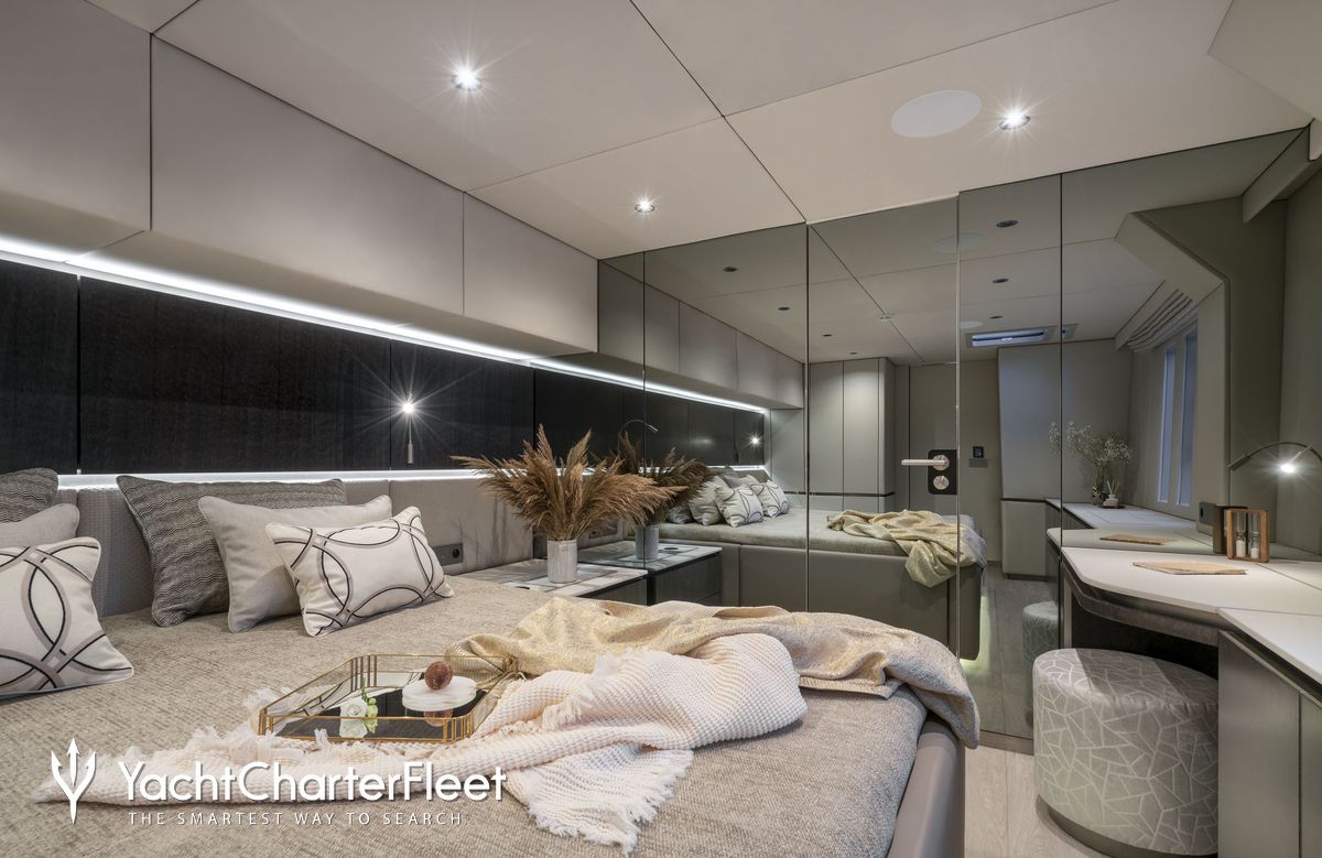 Built in 2022, Yolo offers guest accommodation for up to 8 guests in 4 suites comprising a master suite, one VIP cabin and three cabins that can operate as twins or doubles. She is also capable of carrying up to 4 crew onboard to ensure a relaxed luxury yacht charter experience.