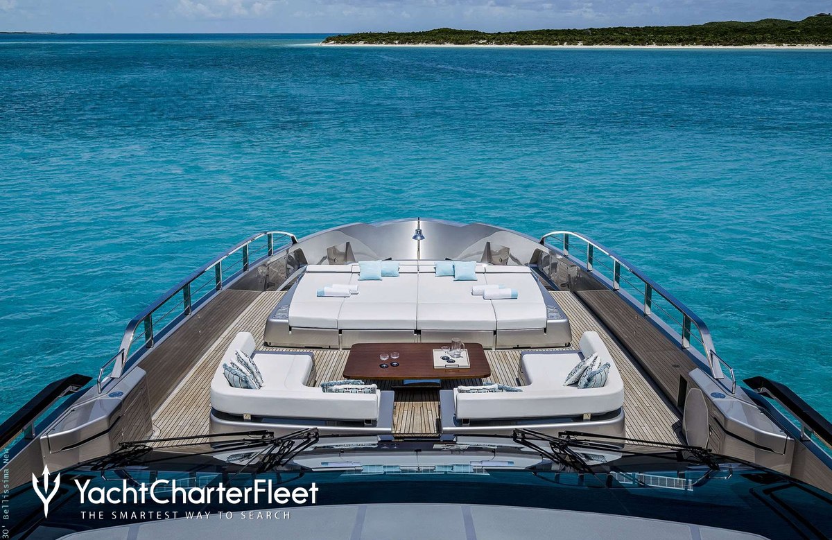 Built in 2024, Tasty Waves offers beautifully proportioned decks for exquisite indoor/outdoor living during a luxury yacht charter.